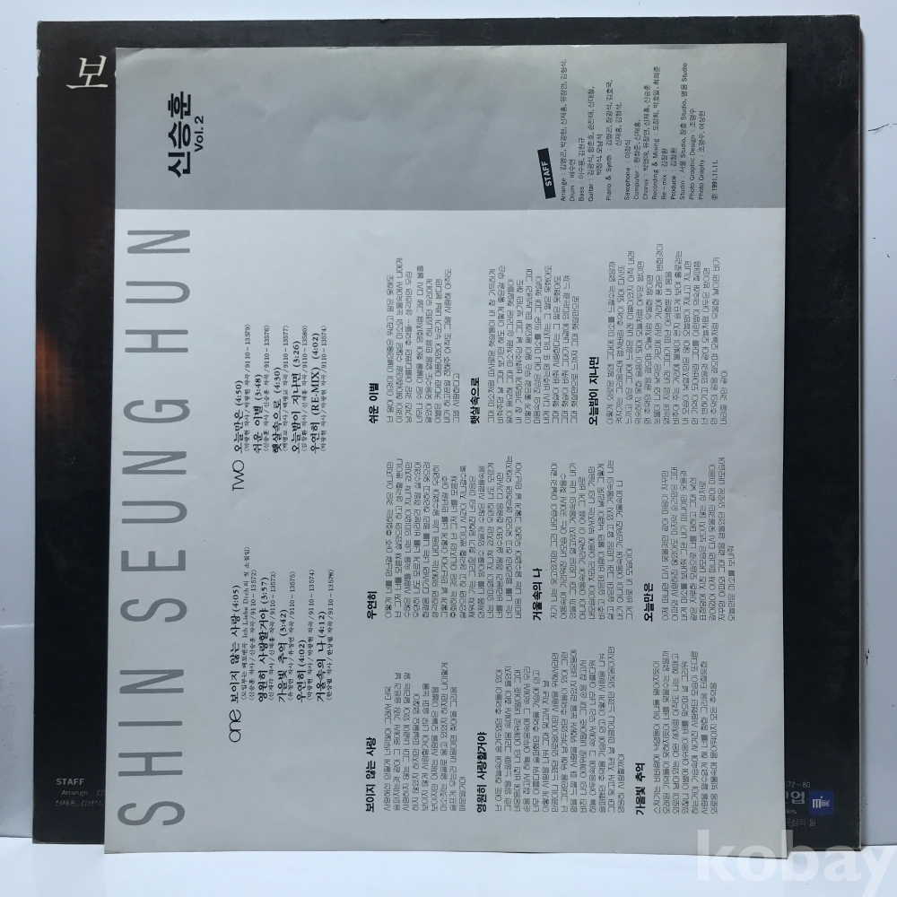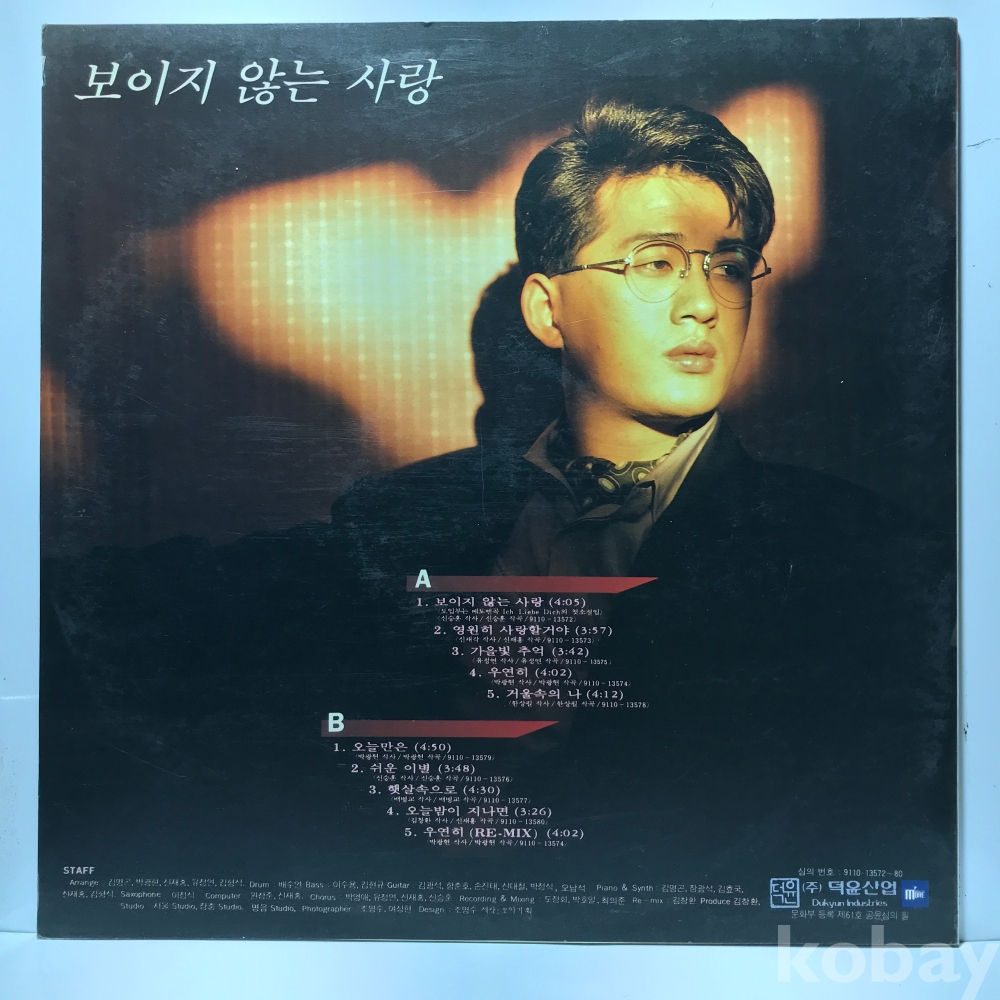 LP LP 1-21-16 신승훈 2집 - 보이지 않는 사랑 . 자켓 EX+ 알판 EX 91 년 국내반