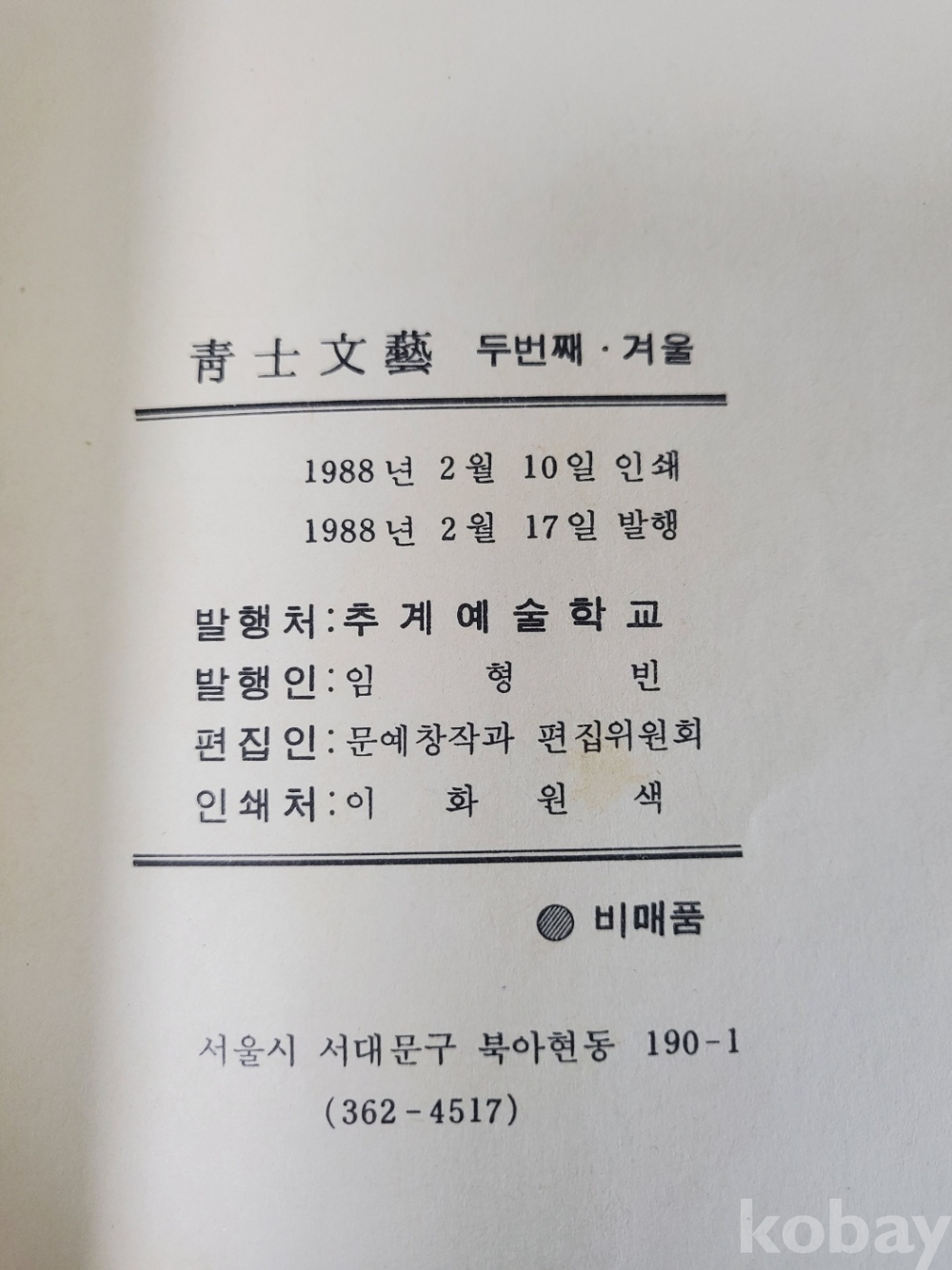 1. 청사문예(첫 번째), 추계예술학교, 1987년, 234쪽, 비매품, 상태 상, 사진 참조