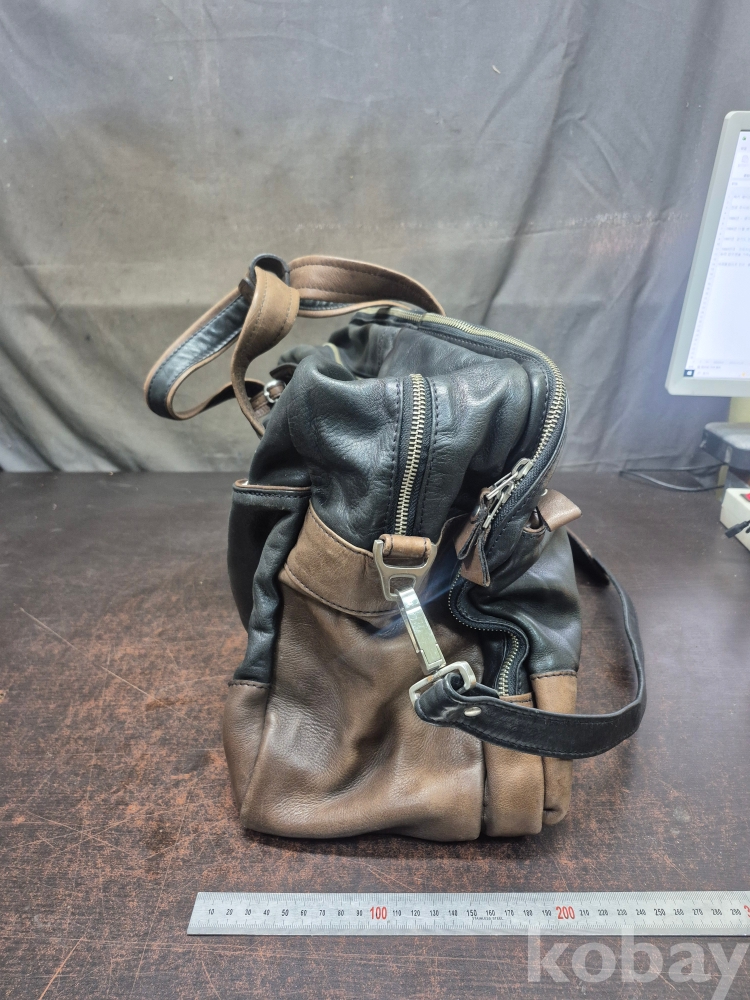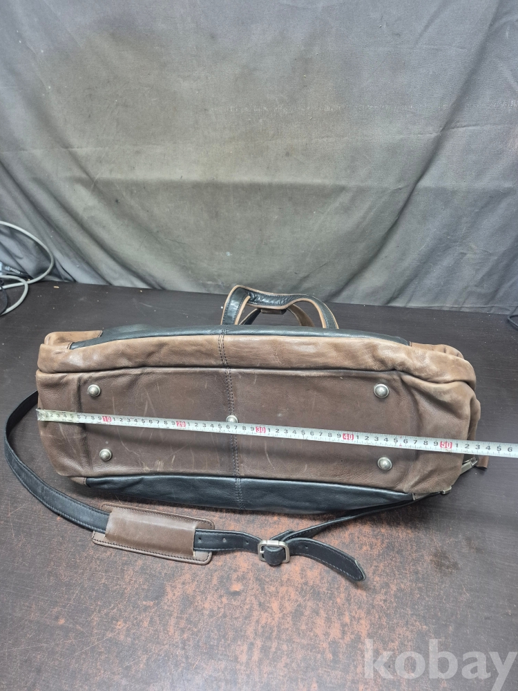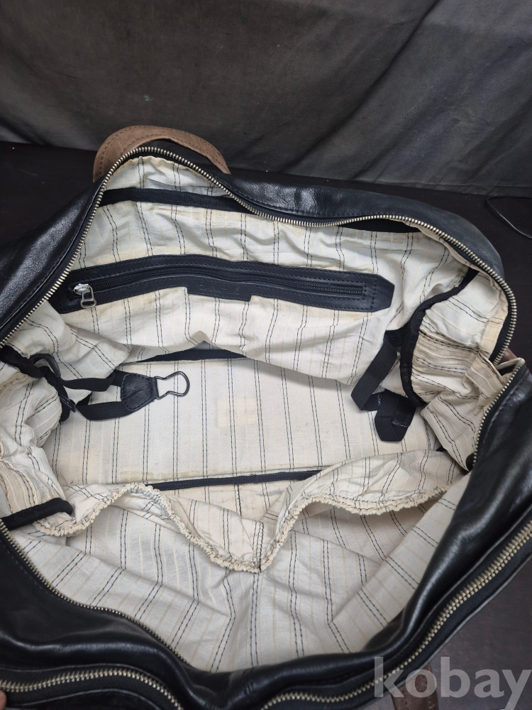 1970-80년대 실사용하던 D Y M S 오리지널 가죽 여행용 가방 통가죽입니다 색상 블랙과 브라운의 조화 입니다 55*20*35