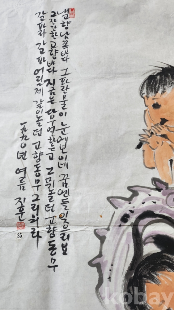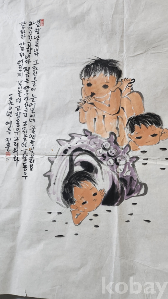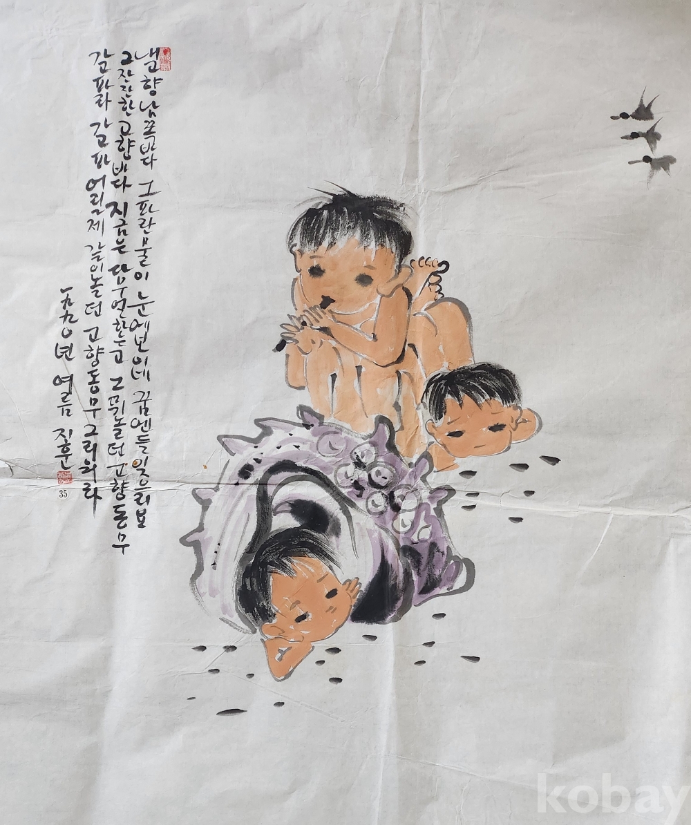 소라 껍데기와 함께하는 어린이 모습에서 천진난만 (天眞爛漫)함을 표출한 작품입니다.