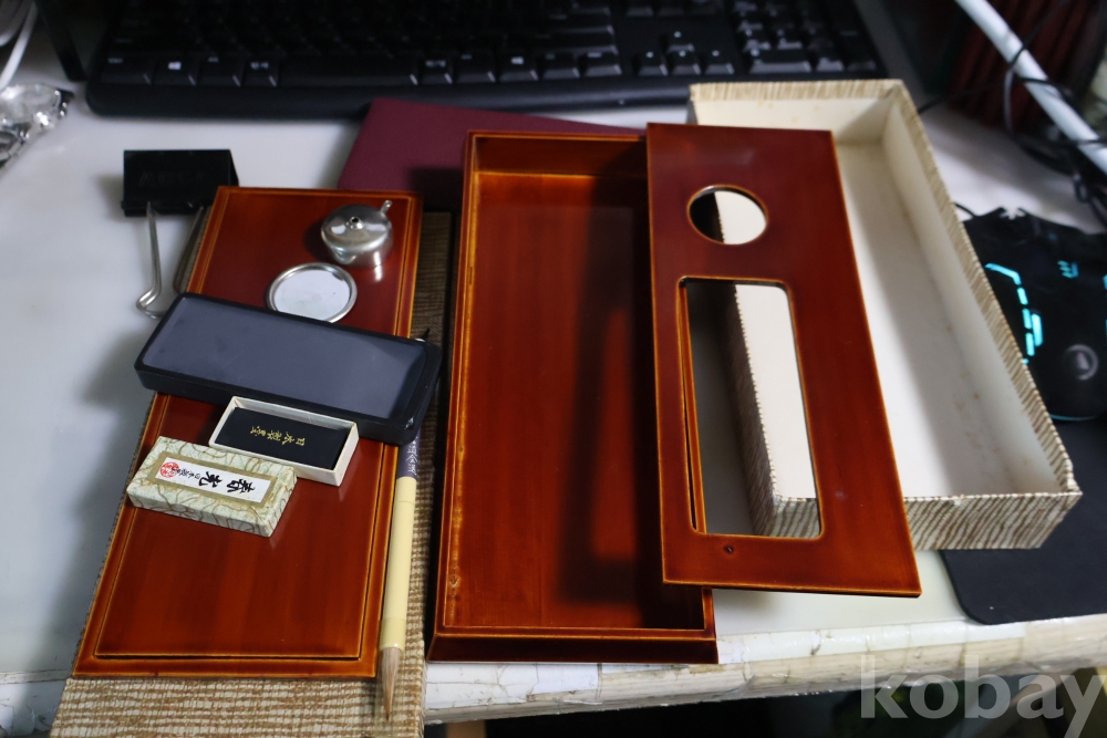 일본 나무 옷칠 서예세트 임니다 고급 옷칠 된 명품 임니다 종이 상자는 세월의 흔적이 보임니다