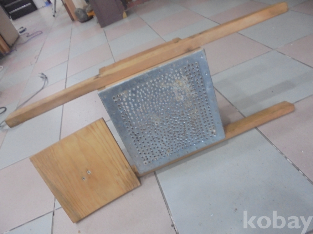 주로 강원도 영서지방에서 옥수수을 갈아 끓여부여 올챙이 모형으로 떨어져건져 양념하여먹던 소나무로 튼튼하고 잘만든 올챙이 국수틀