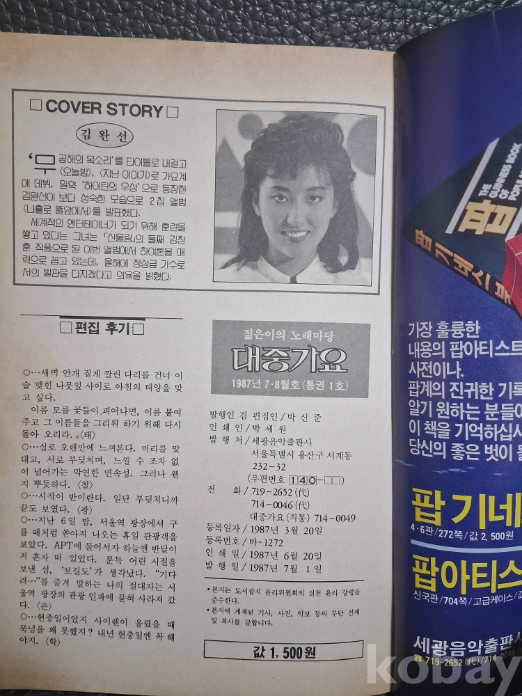 87년 대중가요 창간호 입니다