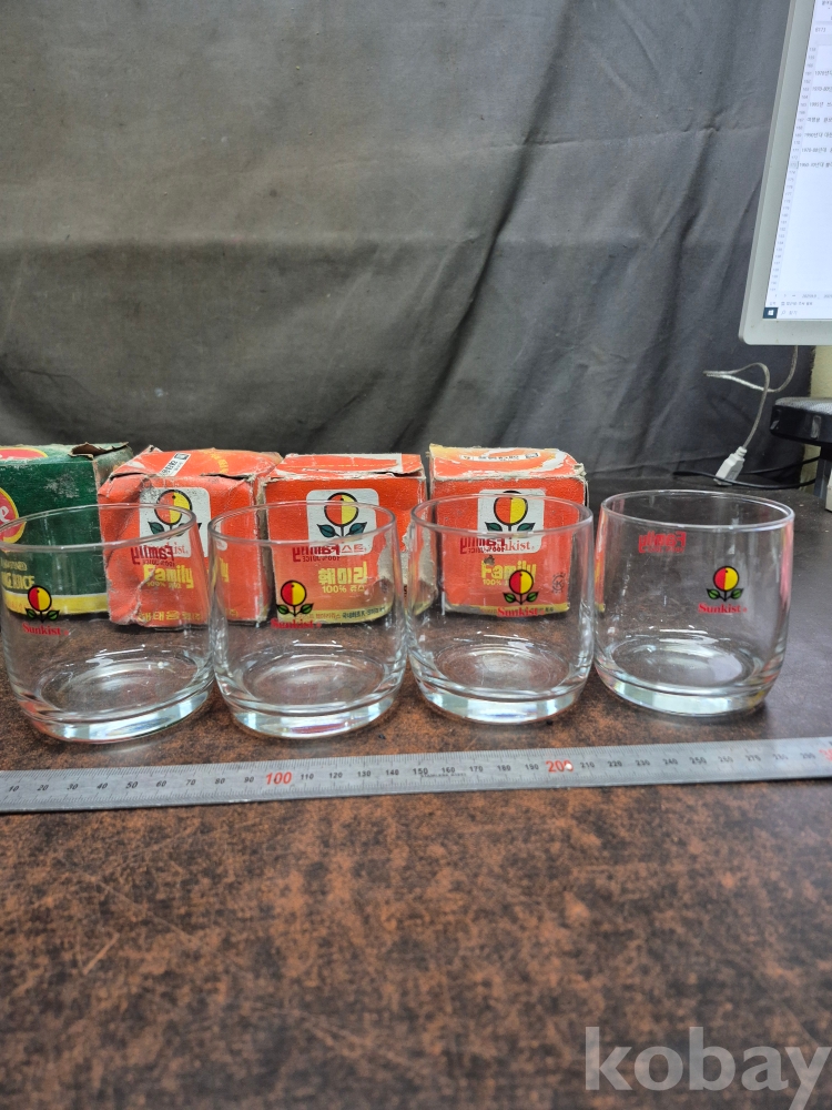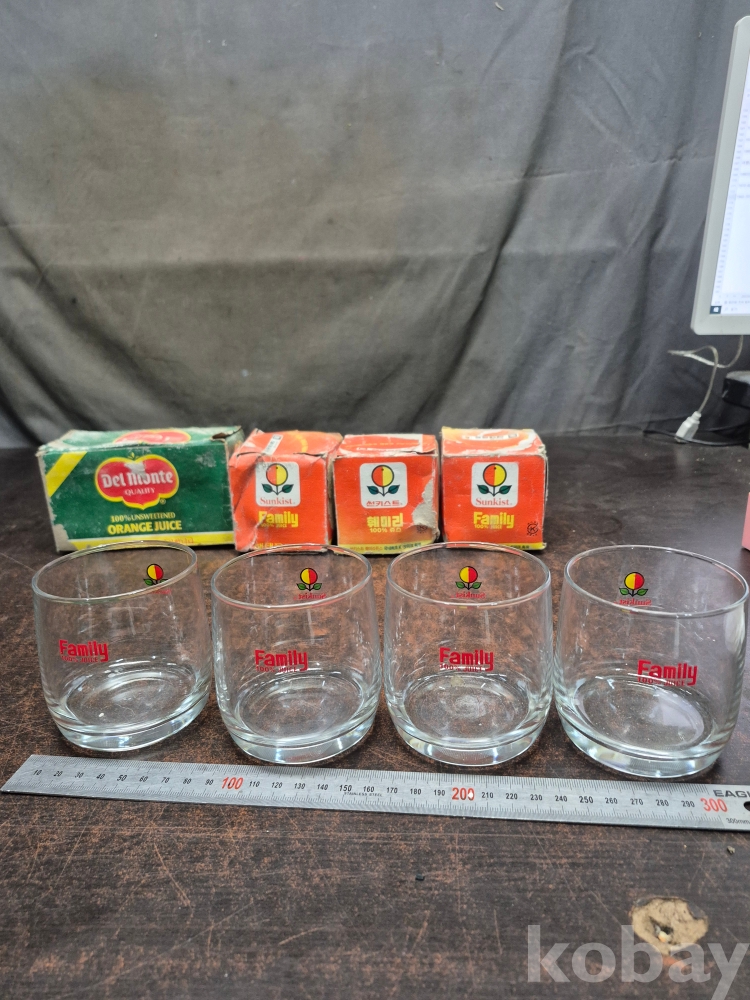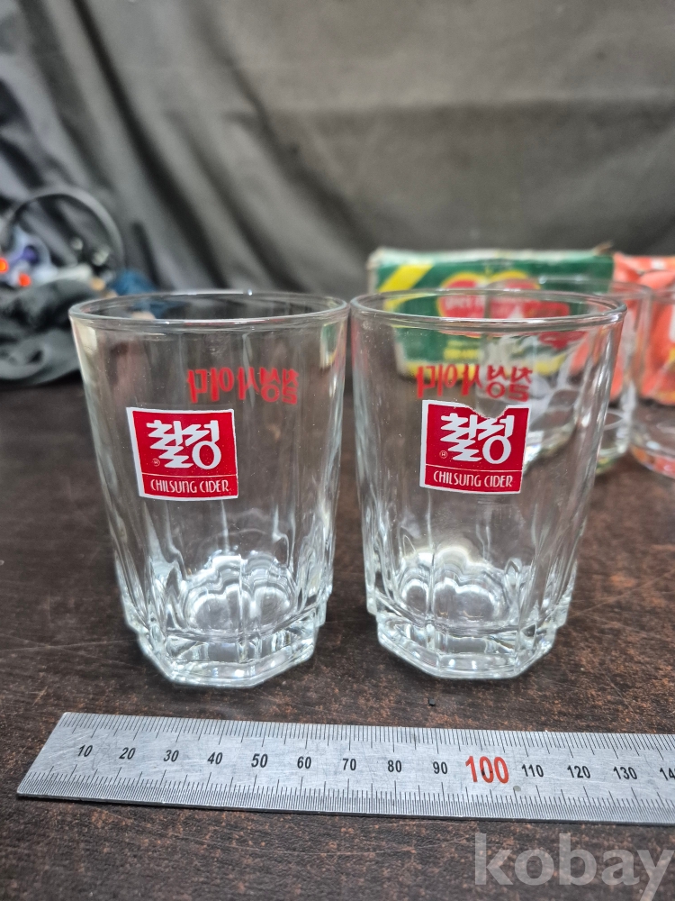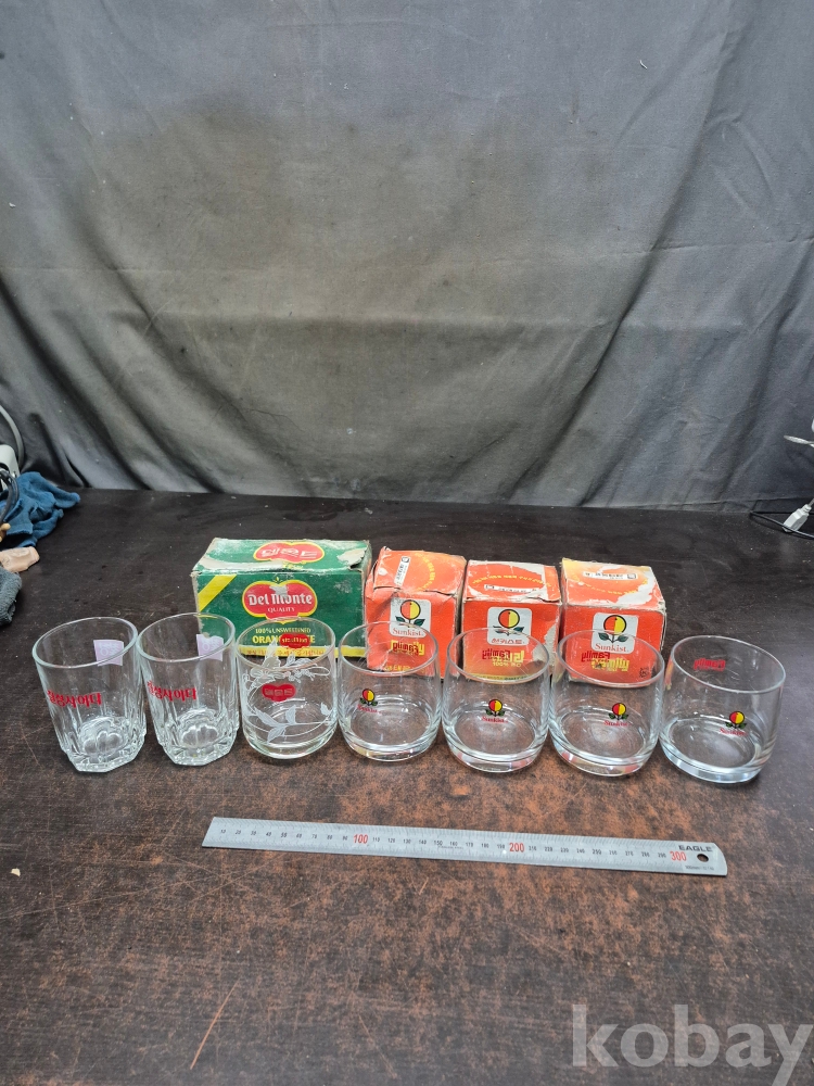 1970-80년대 고전 유리컵 칠성사이다 2 델몬트음료수잔 3 썬키스트 음료수잔 7점 일괄 12점 일괄 8*8*9
