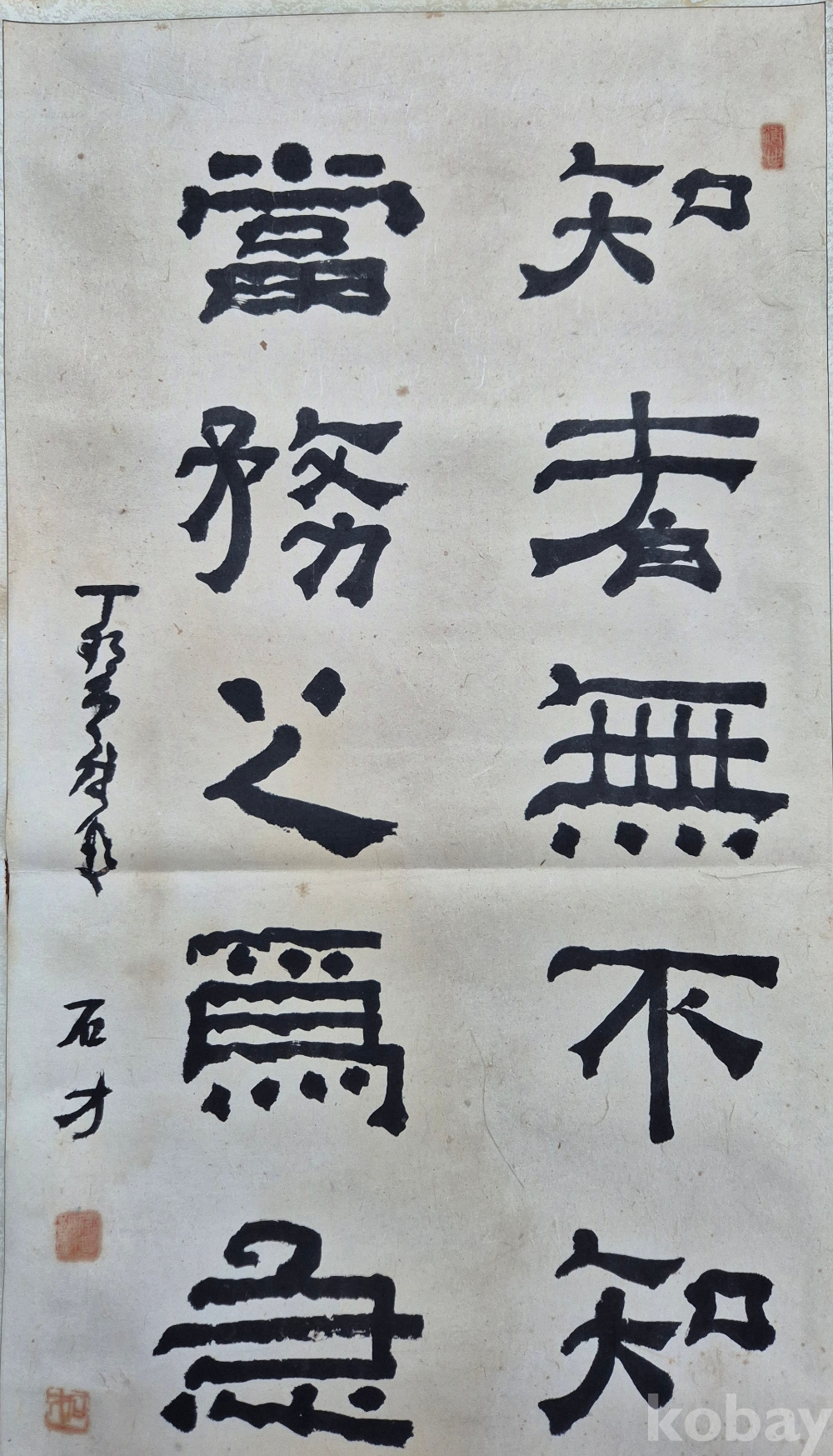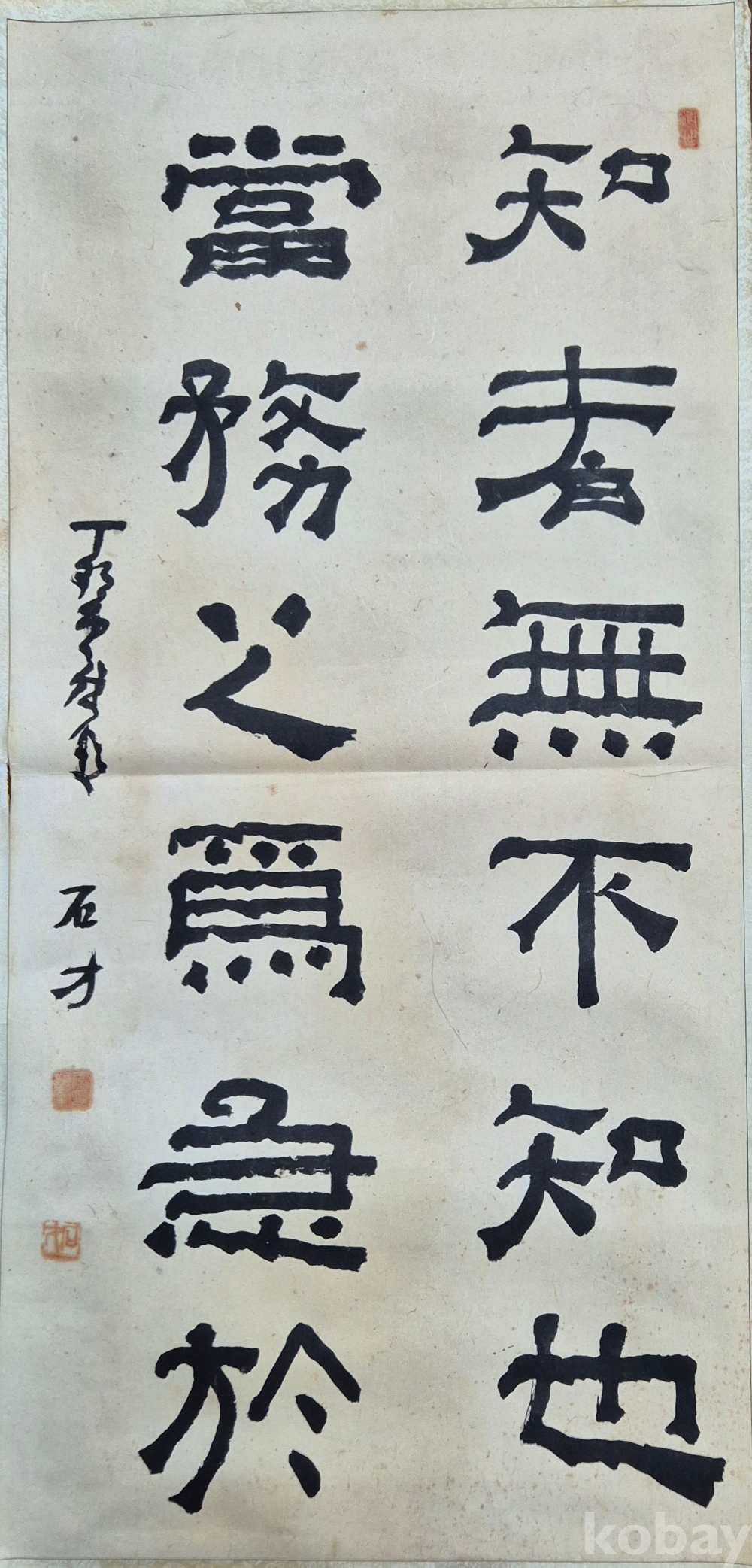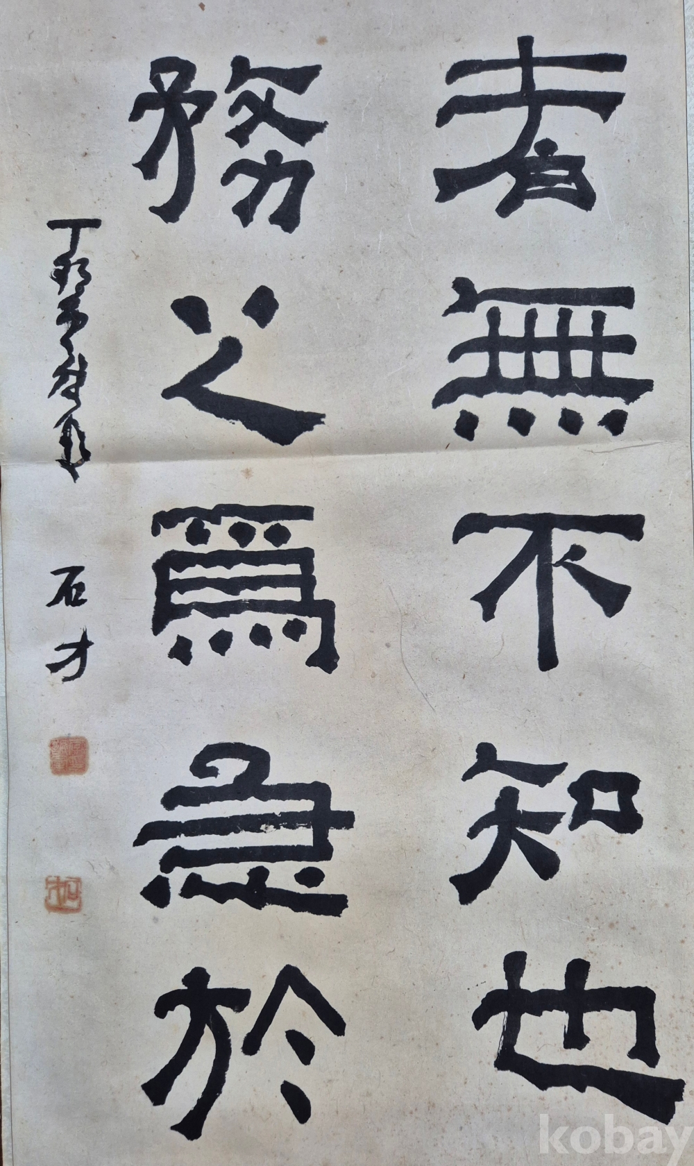 제법 오래된 독특한 서체의 멋진 서예 작품으로 상당한 수준의 작가분 작품 추정되오니 작품 이지상