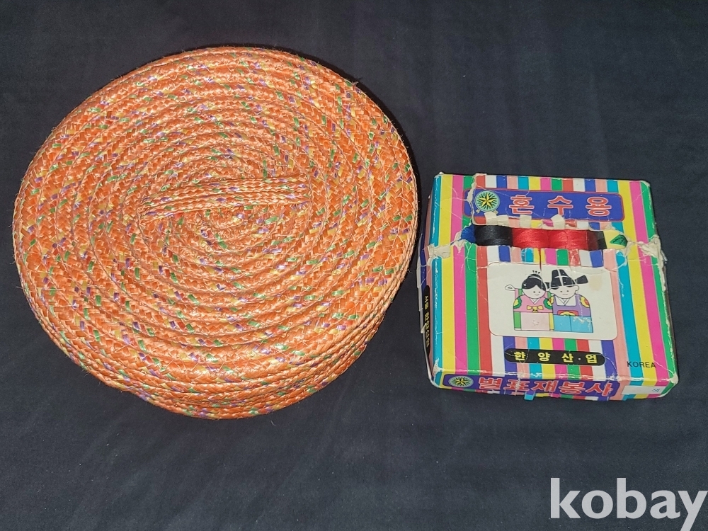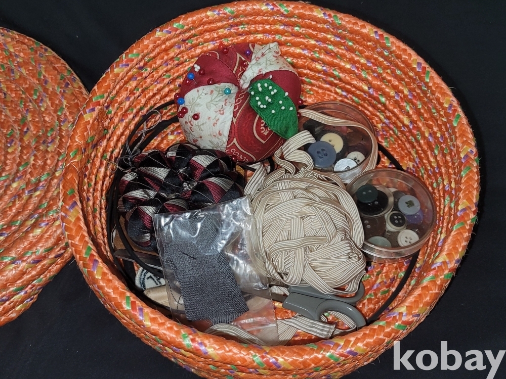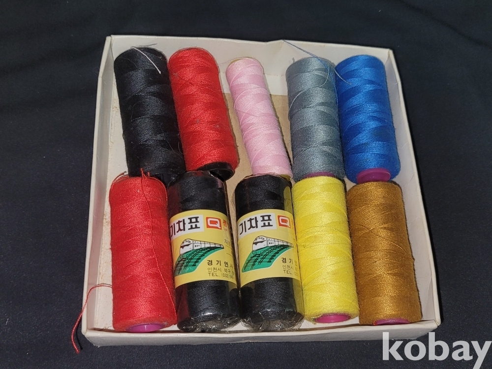 빈티지 바늘꽂이 관련 물건들과 왕골함, 별표재봉사 기차표 실 등 일괄입니다.