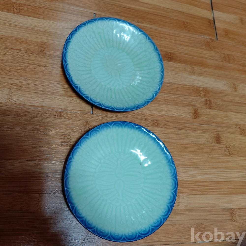 근현대사 해방후 50년대 봉황 양각화무늬 청자접시 두점일괄 올려드립니다