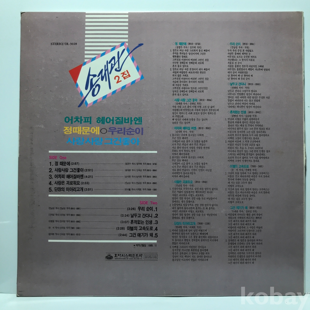 LP 490-39 송대관 2집 - 정 때문에 / 우리 순이 . 자켓 EX- 알판 EX 국내반