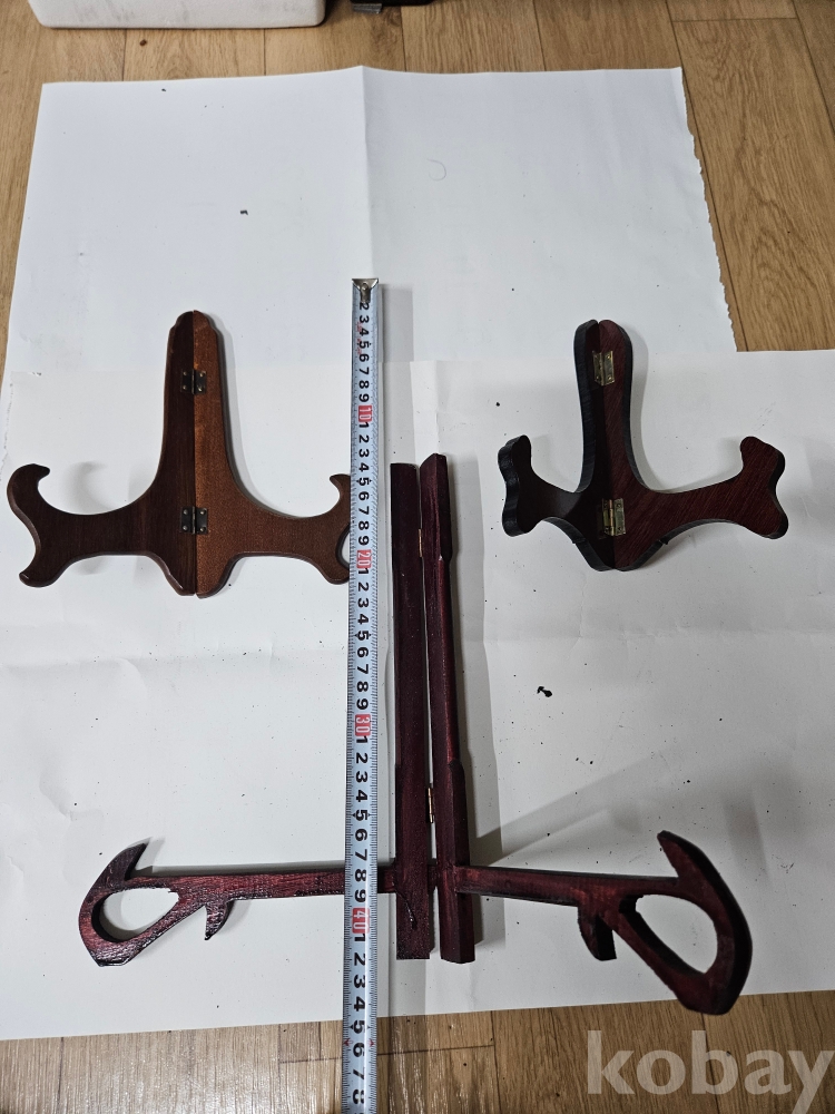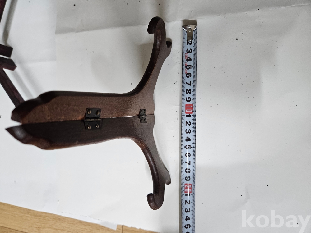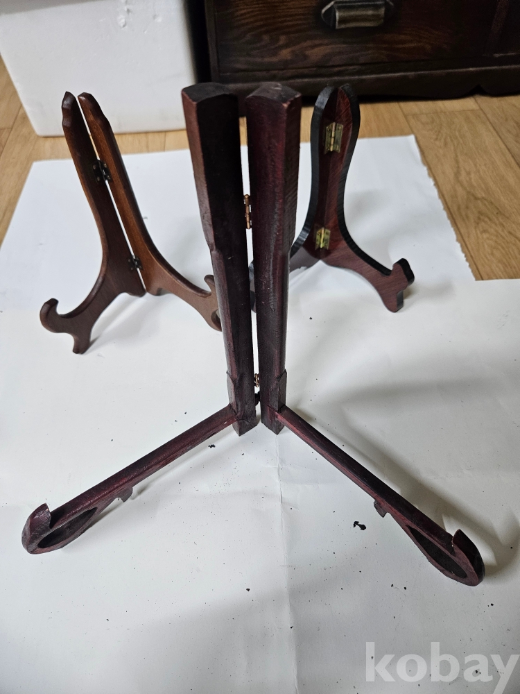 용도: 이 스탠드는 접시, 액자, 도자기 판, 작은 서화(書畫) 또는 장식적인 골동품 등을 세워서 안정적으로 전시하기 위한 디스플레이 거치대입니다.