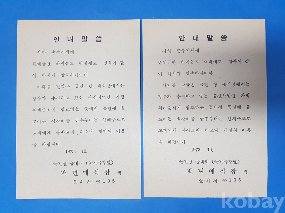 **** 안내말씀/백년예식장/1973.10