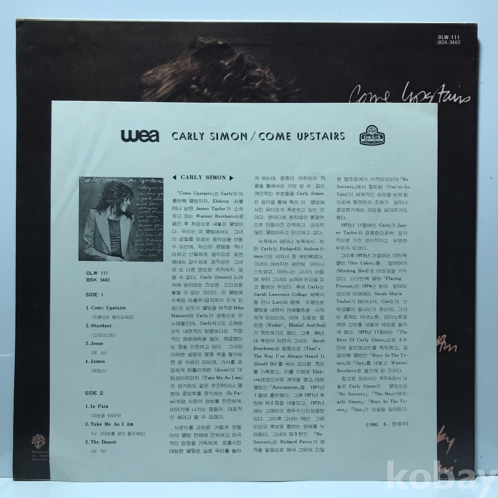 LP 22,447-51 Carly Simon 자켓 EX+ 알판 EX 80 년 국내반