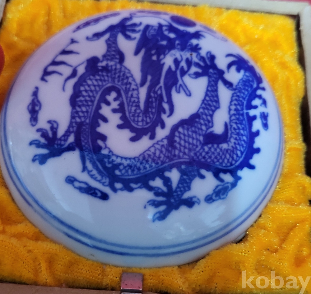 건륭연제 관가 보이는 청화 용문양 백색진흑이 담겨진 합입니다,,