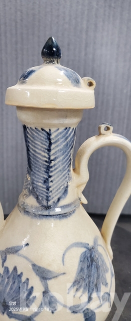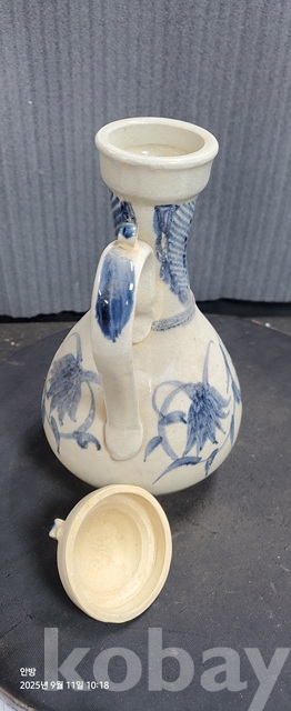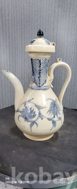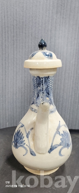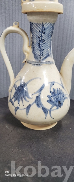 b-110오래된 송청화백자 파초문술주전자