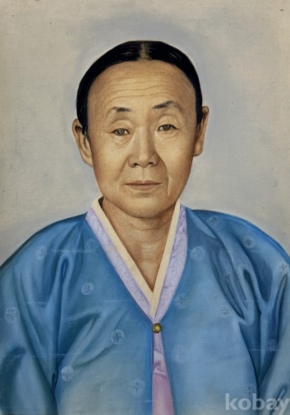 단아하게 한복을 차려입은 노부인의 모습을 담은 고품격 초상화입니다. 인물의 주름 하나하나와 눈동자의 생동감, 그리고 비단 한복 특유의 광택과 질감을 매우 정교하고 사실적으로 묘사한 수작입니다. 세월에 비해 색감이 선명하게 잘 유지되어 있습니다. 근현대 인물화나 복식 자료에 관심 있는 수집가분들께 추천드리는 가치 있는 작품입니다.