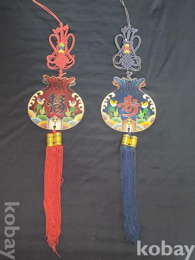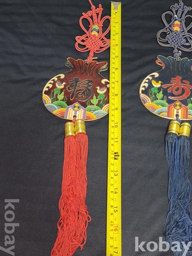 빈티지 복주머니 모양 칠보 동 벽걸이장식 2종 일괄입니다.