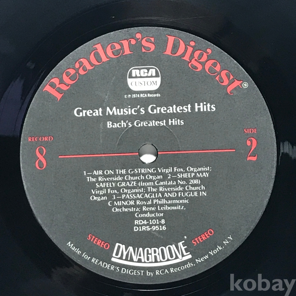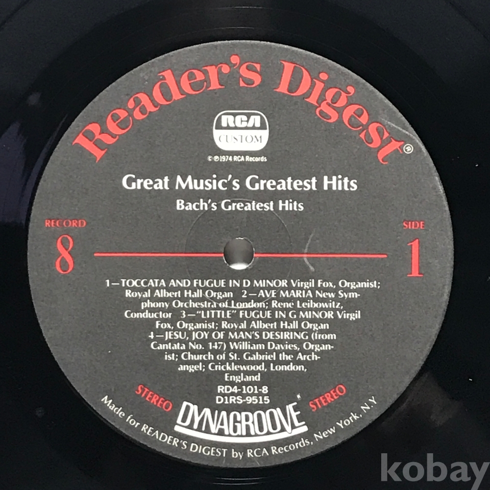 LP 83,623-198 Great Music's Greatest Hits Bach's Greatest Hits - -TOCCATA AND FUGUE IN D MINOR Virgil Fox . 자켓 無 알판 EX 74 년제작 수입반