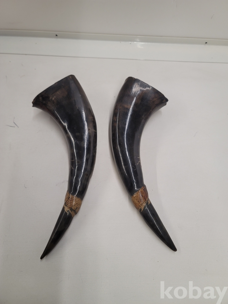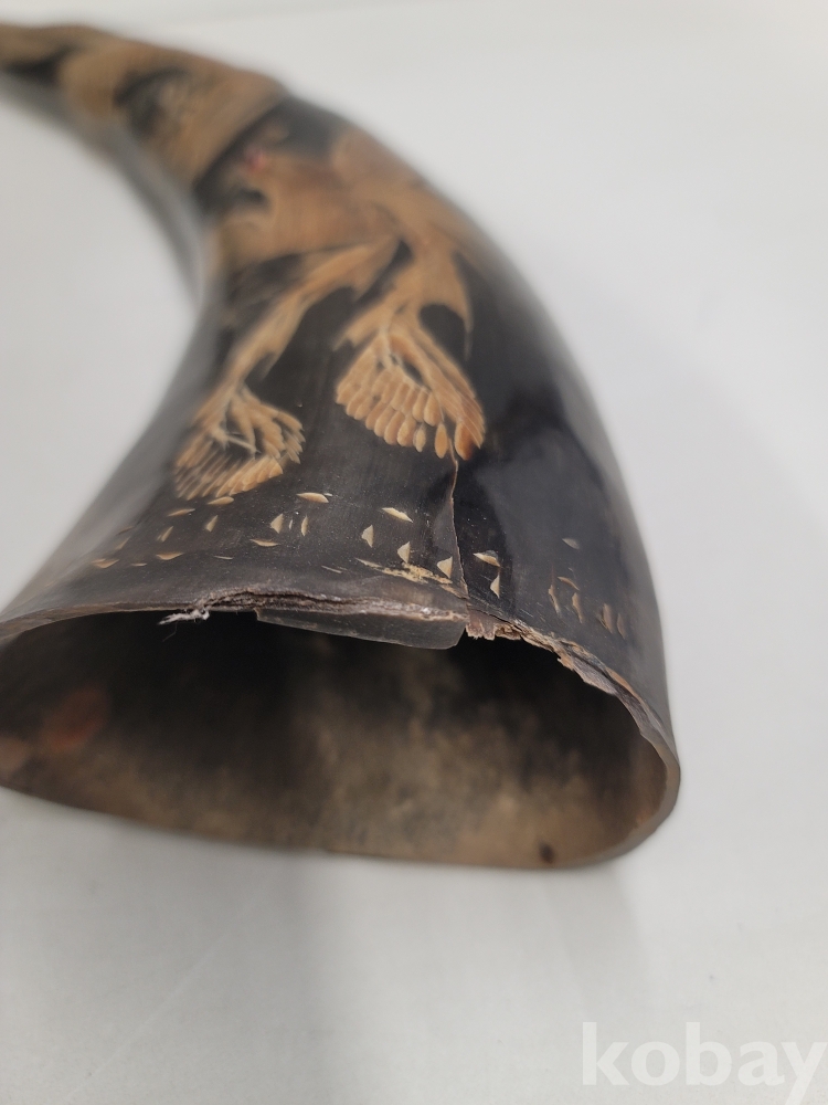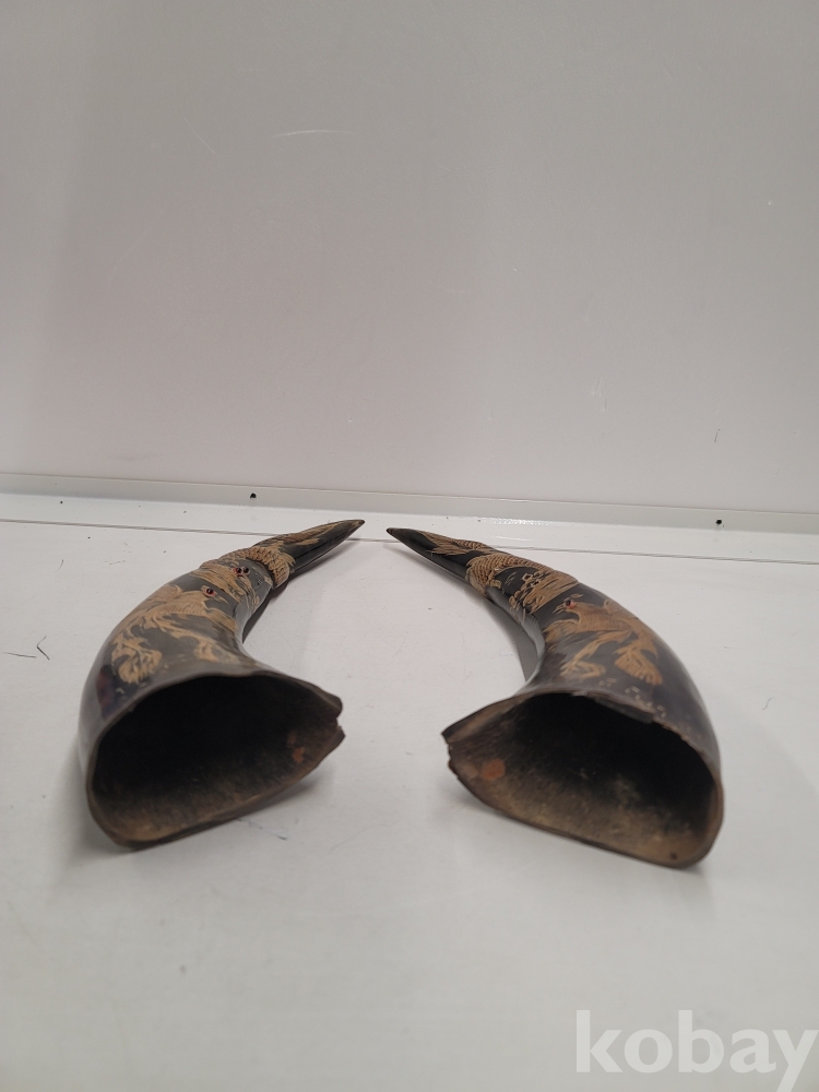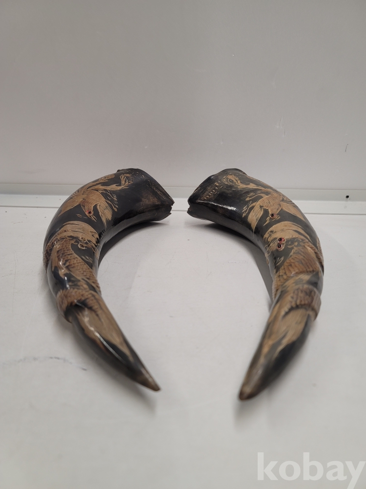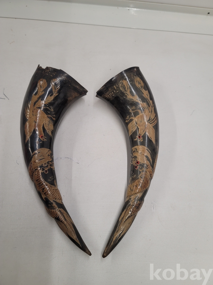 [*천원행복*] L - 1-0829 독수리 문양 물소뿔장식 2개 (약간 깨진 부분 있음, 32*9)