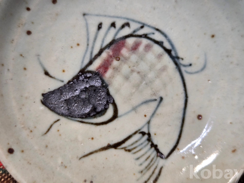 <투킴스> 중국 골동, 먹청유리홍 어문 소접시