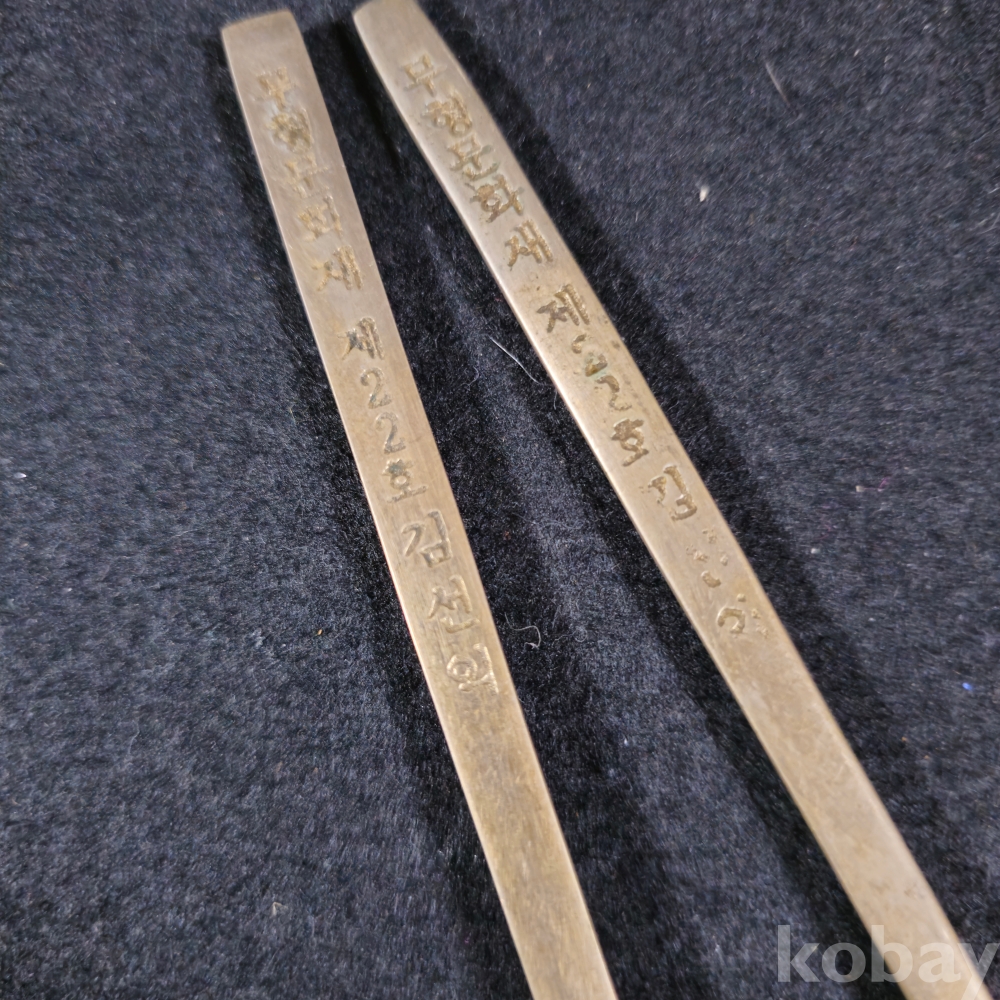 (((근현대사자료))) 오래전 무형문화재 재22호 김선익 놋수저 2개