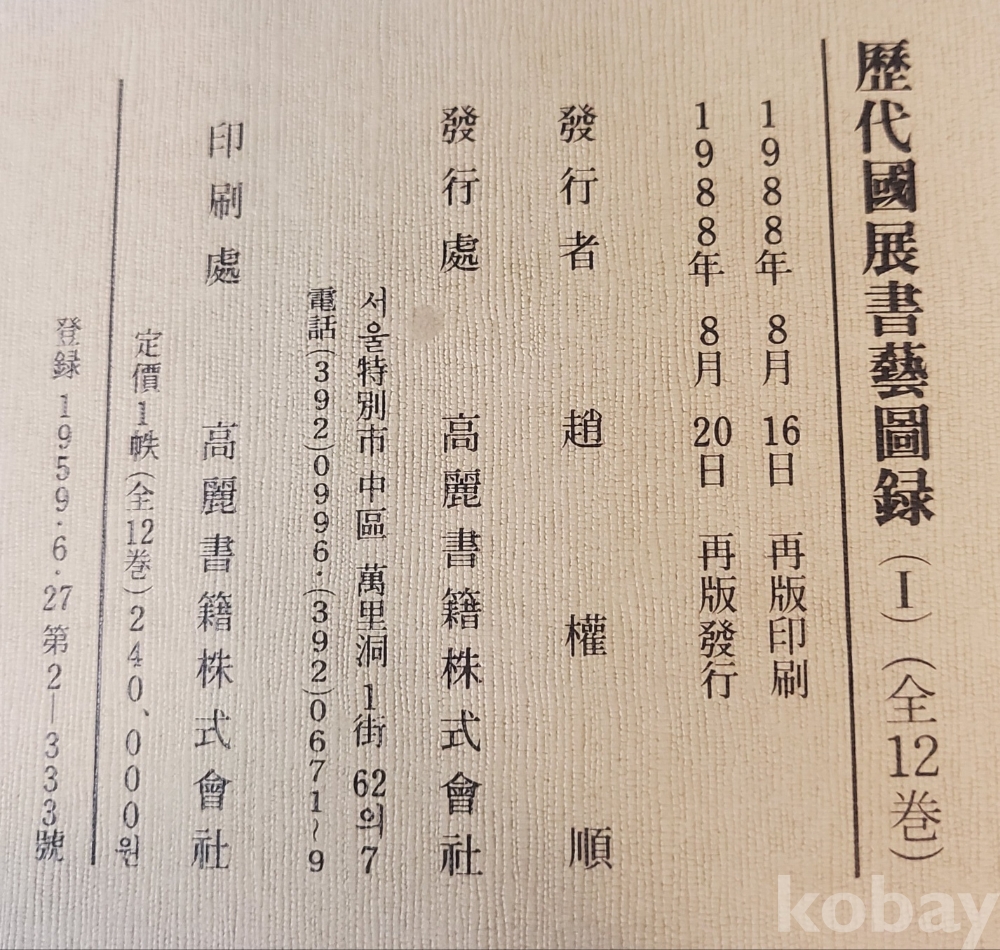 1. 역대 국전 서예 도록 전12권, 고려서적주식회사, 1988년, 상태 상, 사진 참조