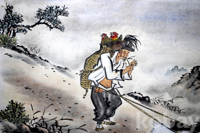 한국전통예술대상전 특선작가인 藝園(예원) 김영산의 풍속도 - 닭장수와 염소