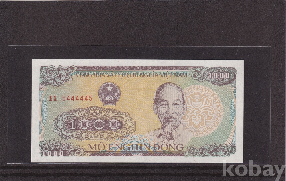 *베트남 특이번호 지폐 모음展* 1988년 1000동 EX 5444445 - 5봉 레이더 미사용 지폐