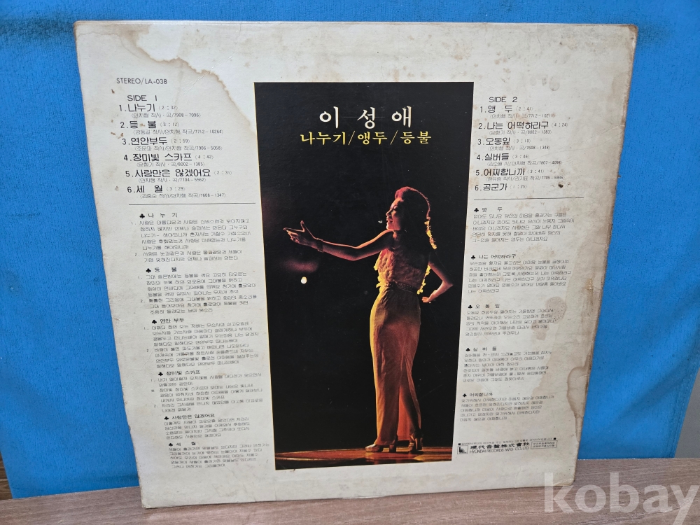 | 자켓상태 | EX : 약간의 마모, 모서리 찢김 존재 | 음반상태 | EX : 재생에 영향 없는 가벼운 기스 존재 | 발매정보 | 초반 | 가사지여부 | 무 |