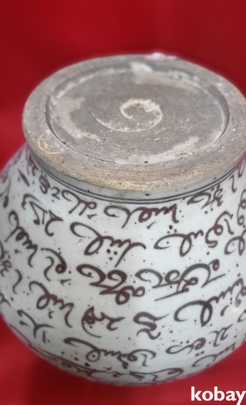 범어(梵語) 문자가 기물 전체에 진사로 시문된 귀한 항입니다,