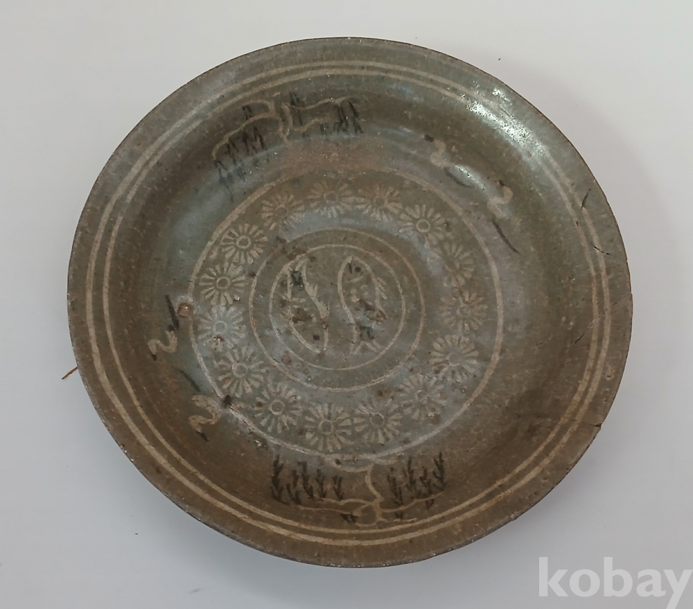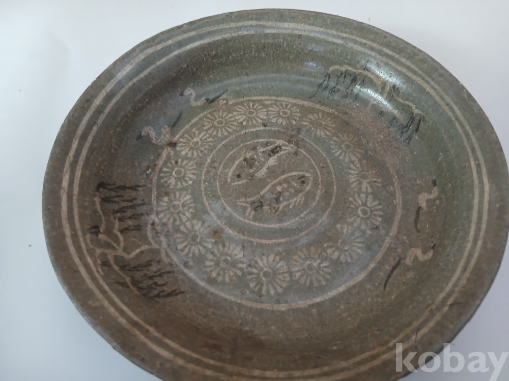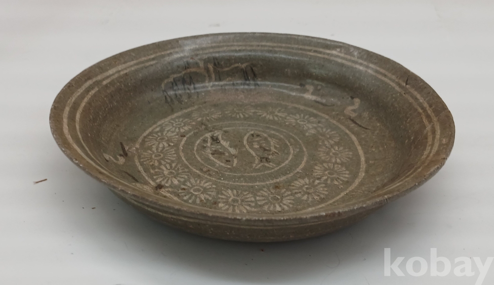 고려 청자 흑백상감 쌍어문 접시 입니다.