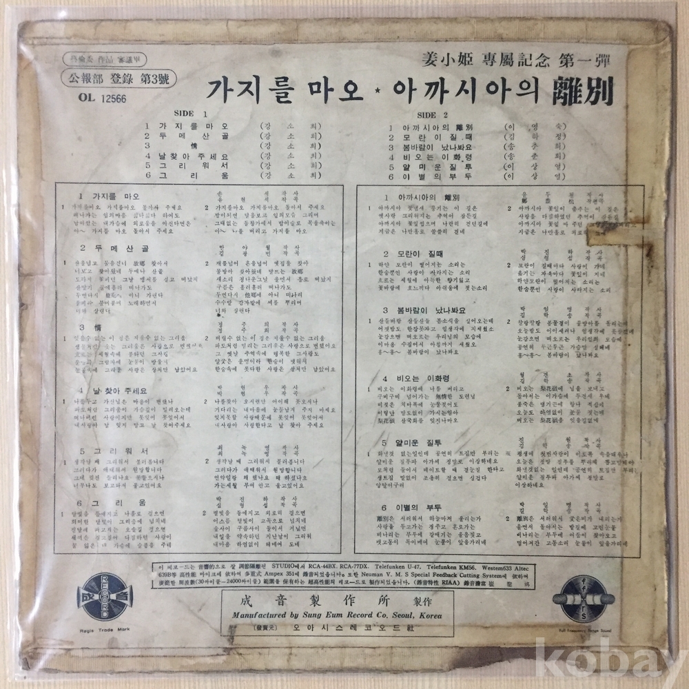 ⊙ 1968년 / 성음레코드 - OL 12566