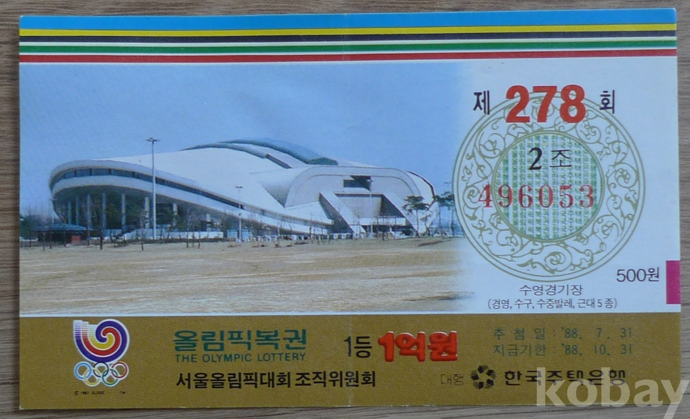 1988년 올림픽 수영 경기장 배경 올림픽 복권 제278회