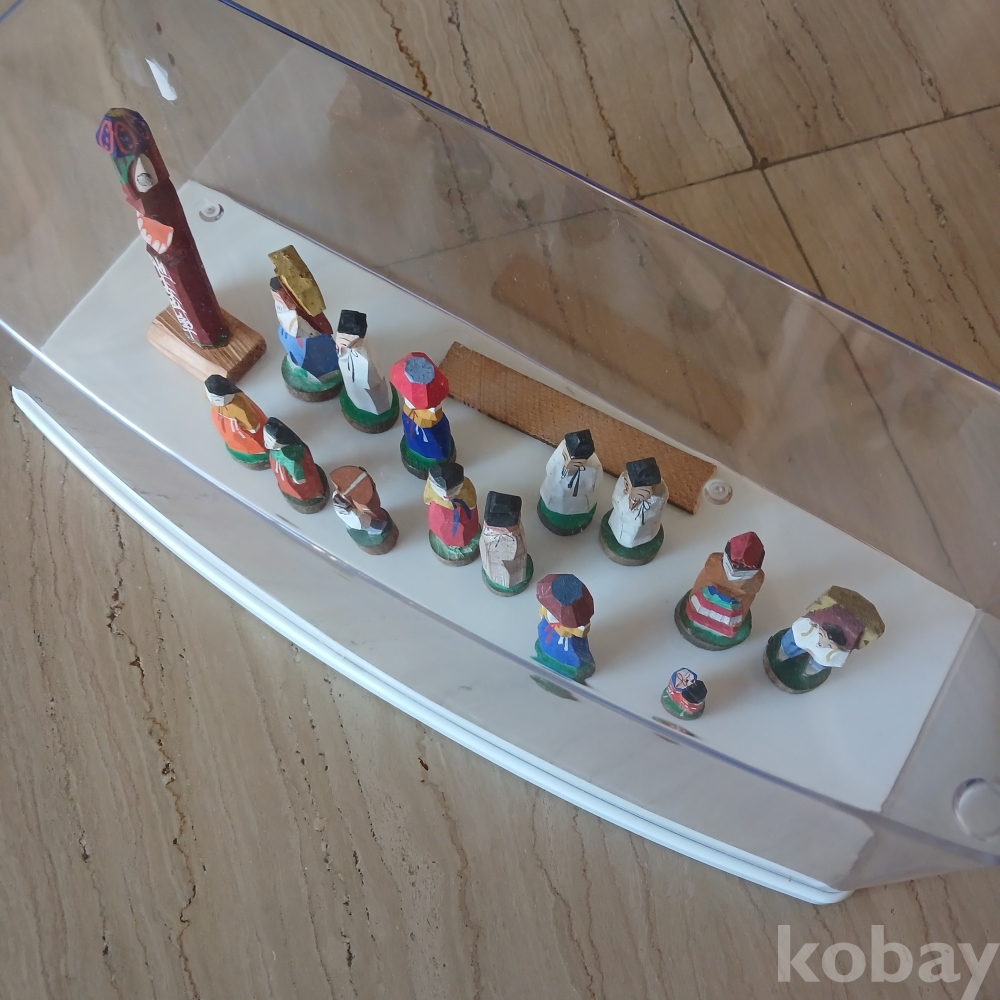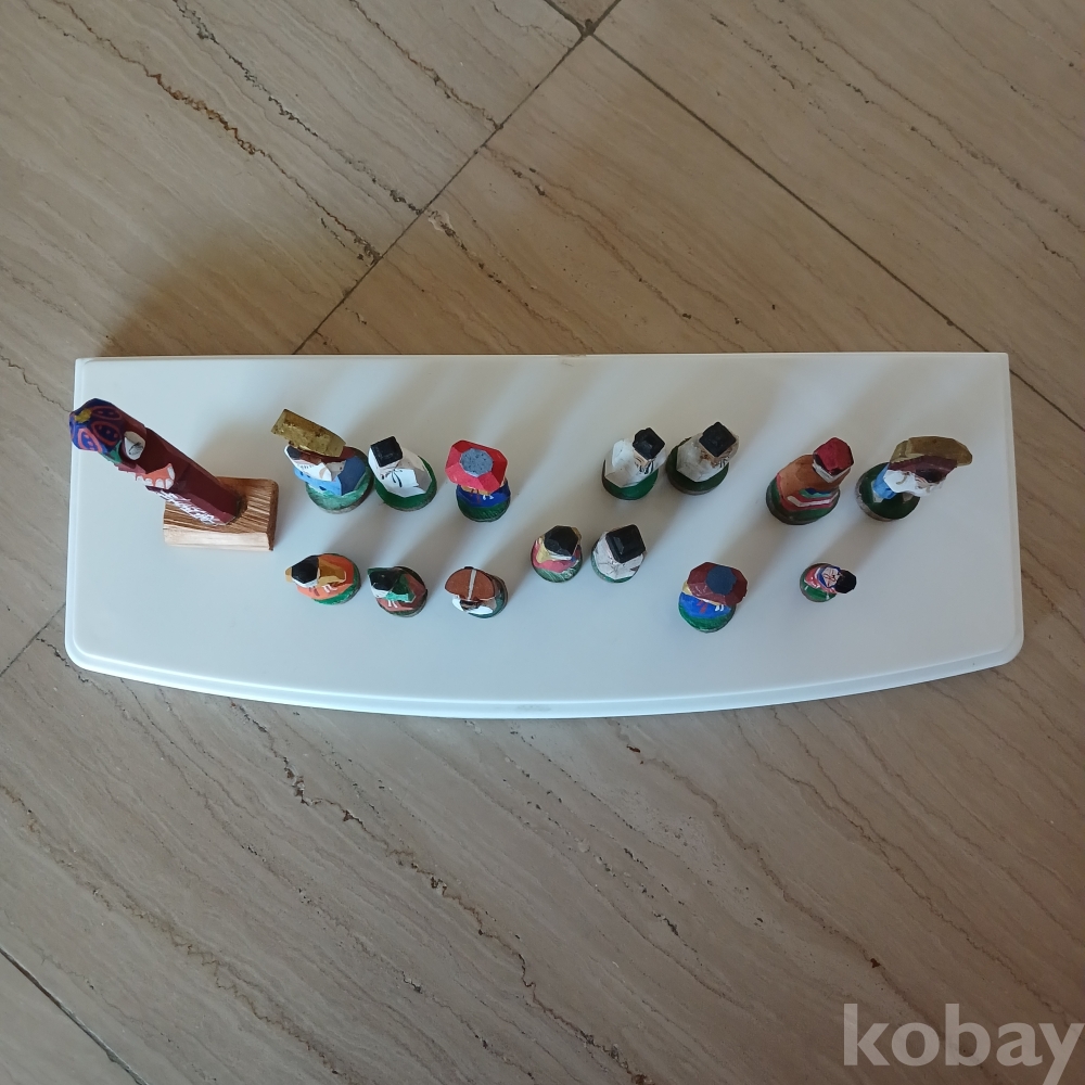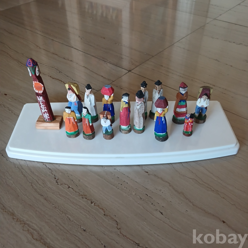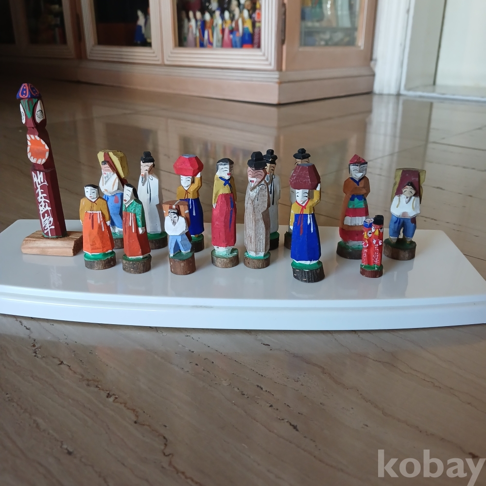한국 근대사적 유물입니다 100년전 조선반도에 관광온 일본인들어게 방문 기념으로 판매됐던 손조각 인형들입니다ㆍ 받침과 몸통이 일체형이고 당채를한 전통조선인들의 복식이 소개되는 현대의 피규어 입니다 모두15개입니다 저렴히 출발합닏 ᆢ 케인스도 요청시드림니다 요청없음 안드림니다ㆍ
