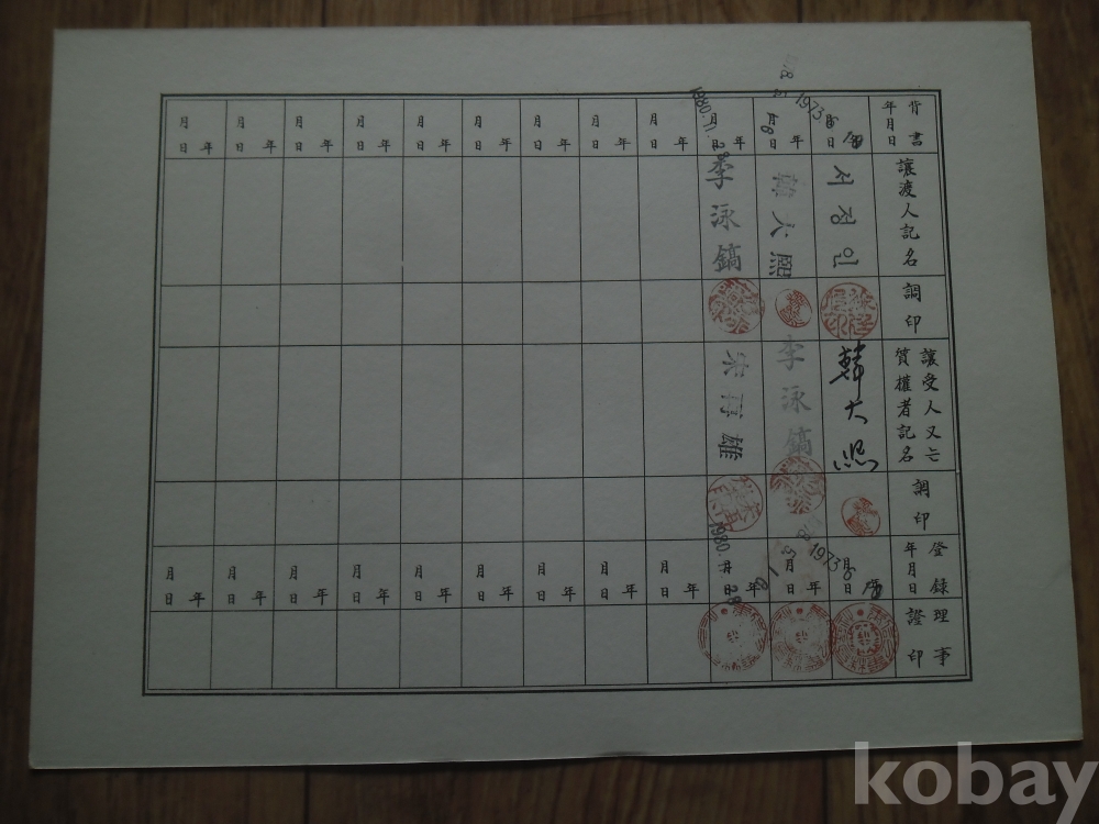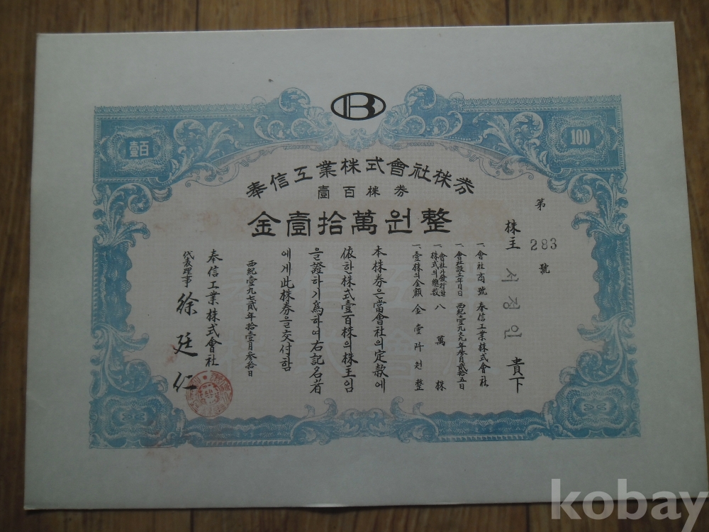 1972년 봉신공업(주) 일십만원 주권