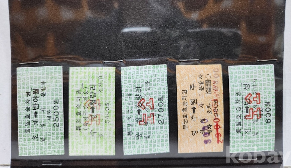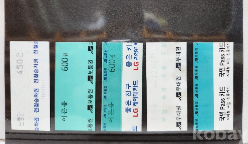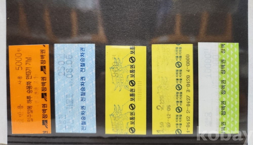 -기차, 지하철, 버스표등 다양합니다.