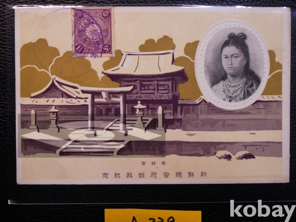 ▣신공황후 초상과 향추궁 신사/귀함/일제강점기 사진엽서, 그림엽서, 회엽서. A339