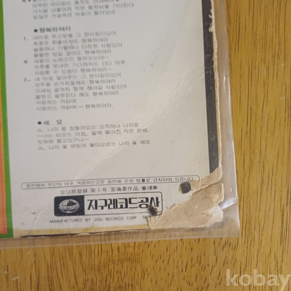 | 자켓상태 | EX : 약간의 마모, 모서리 찢김 존재 | 음반상태 | EX : 재생에 영향 없는 가벼운 기스 존재 | 발매정보 | 초반 | 가사지여부 | 무 |