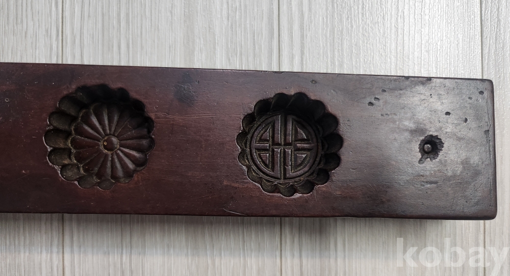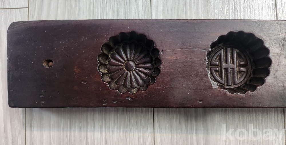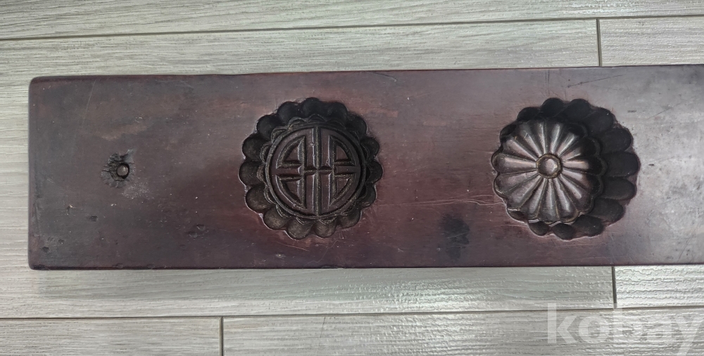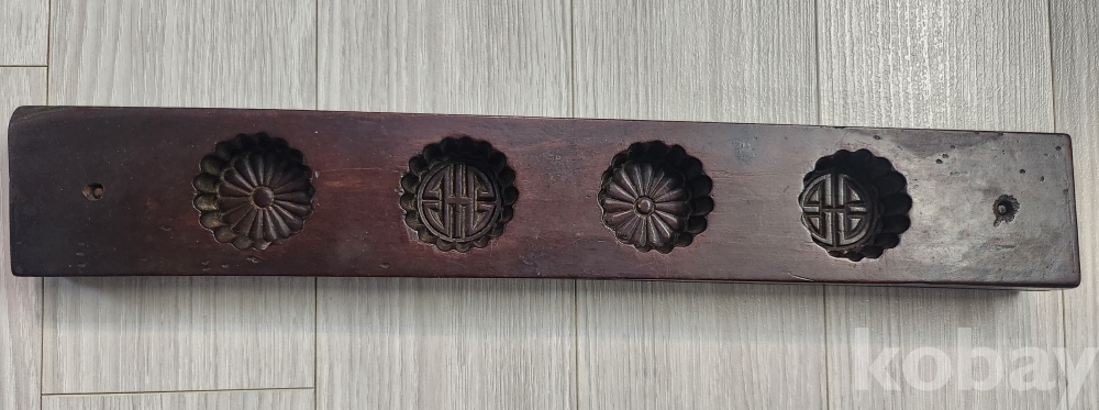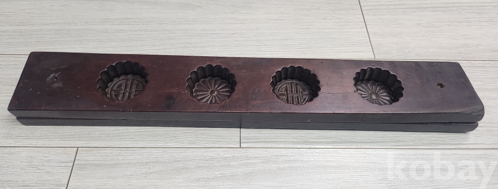 선조들이사용한 대형 4구 다식판 입니다 조각이 음 양각으로 글과 꽃이 정교하게 잘새겨져 있습니다 사진에서 보듯이 오랜 세월감을 느낄수 있습니다 사진참조 바랍니다