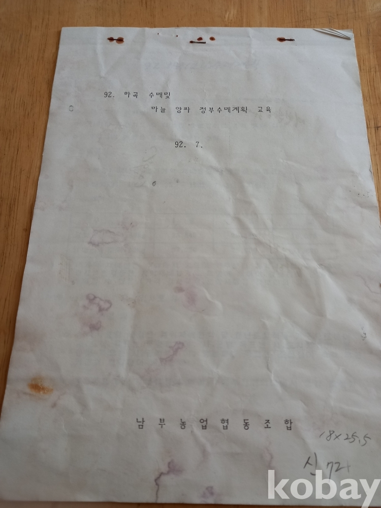신 72) 하곡수매 및 마늘 양파 정부 수매계획 교육