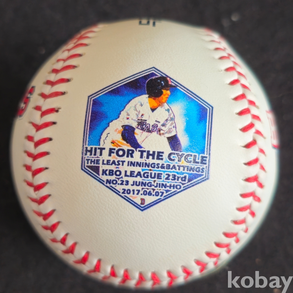 (((프로야구/야구공/싸인볼))) 2017년 두산베어스 정진호 사이클링 히트 기념구 포토볼(소형구)