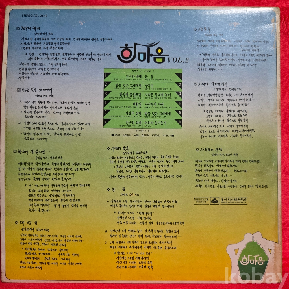 | 자켓상태 | EX : 약간의 마모, 모서리 찢김 존재 | 음반상태 | EX : 재생에 영향 없는 가벼운 기스 존재 | 발매정보 | 초반 | 가사지여부 | 무 |