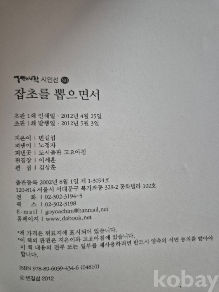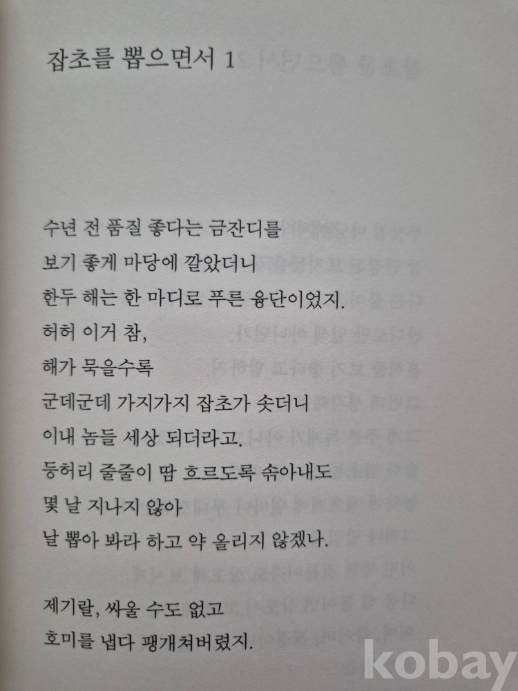 2012년 발간한 첫 시집 『잡초를 뽑으면서』