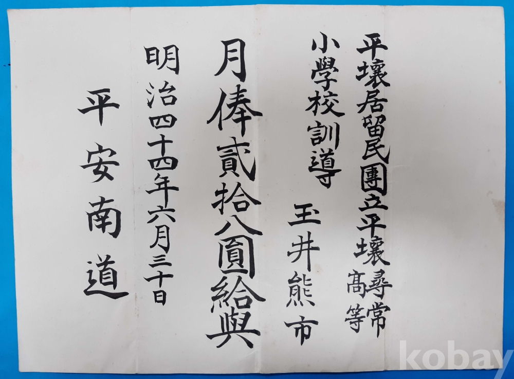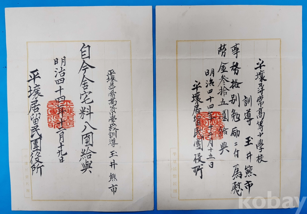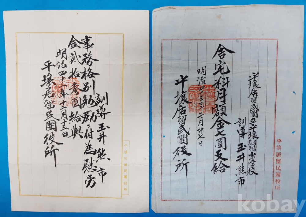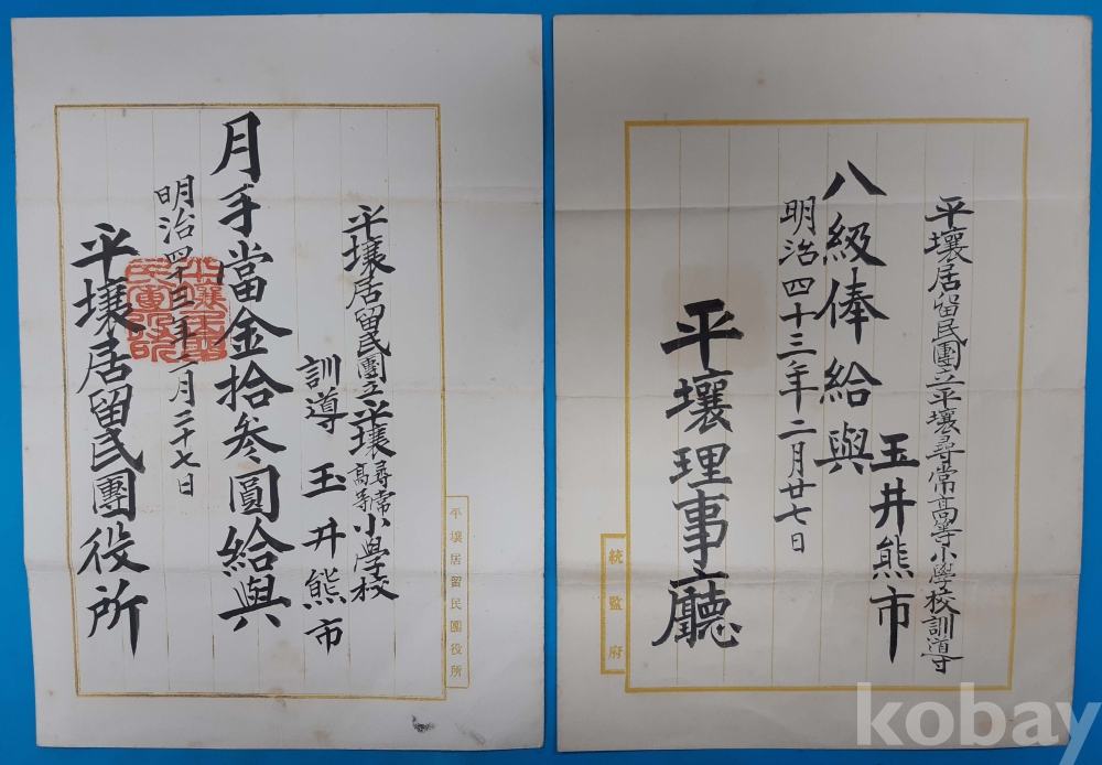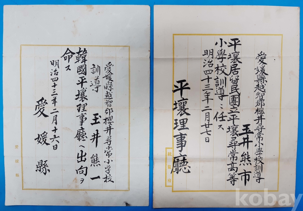 ※ 한국평양이사청 출장명령서,평양거류민단립평양심상고등소학교 훈도 임명장