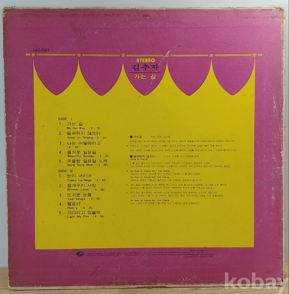 김추자 (가는길 / 슬퍼하지 않으리) 1974년 지구레코드 초반