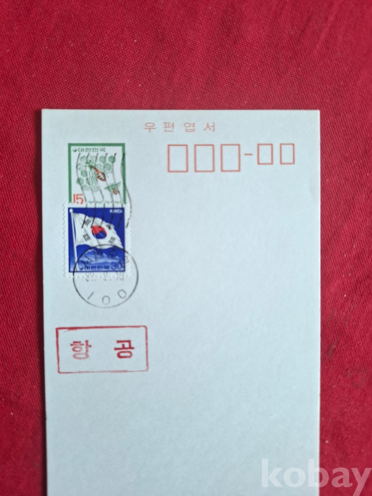 1980년 15원 짜리 등기 우편엽서 (30원 우표가 추가 된 완전 미사용.항공우편 엽서)