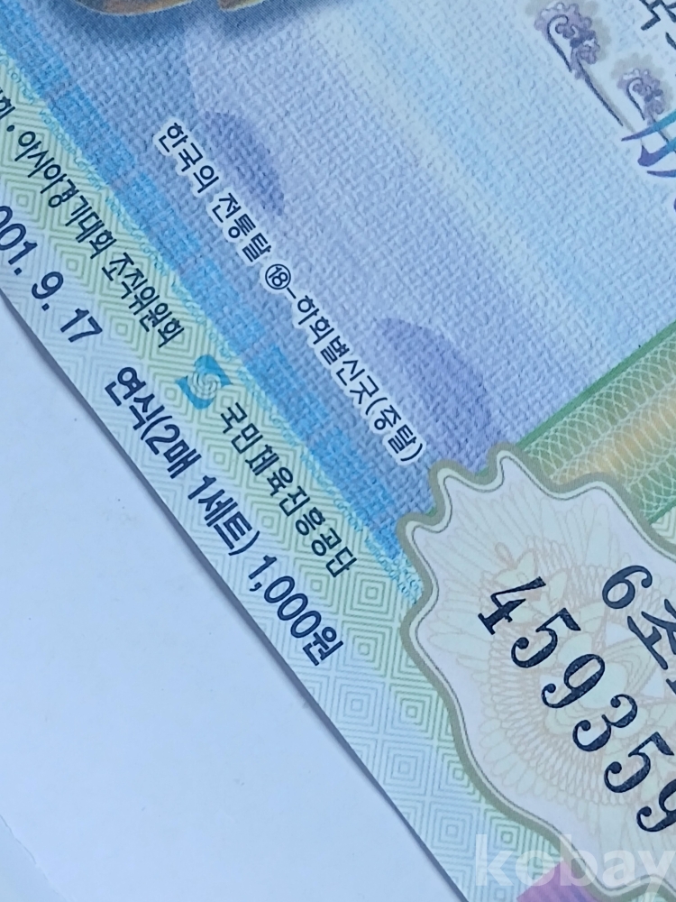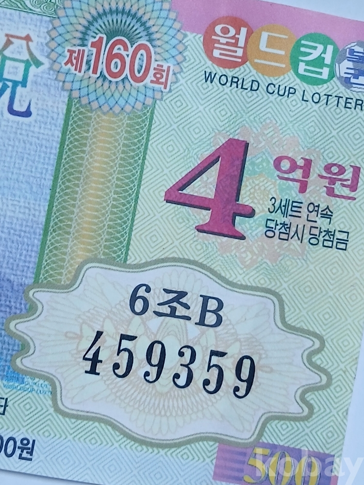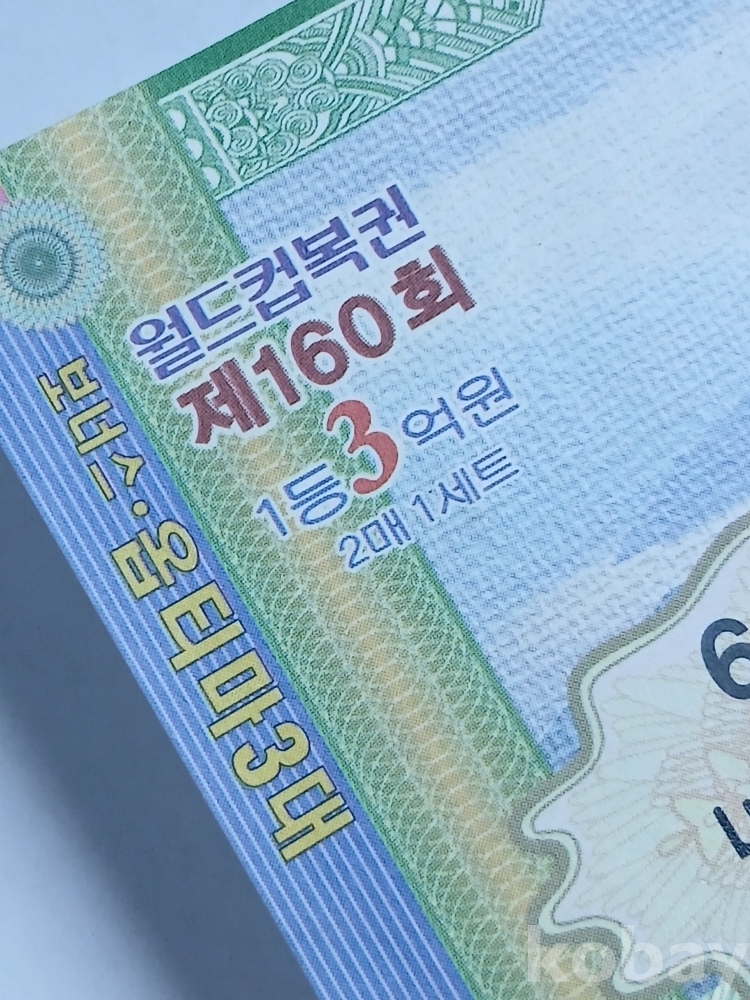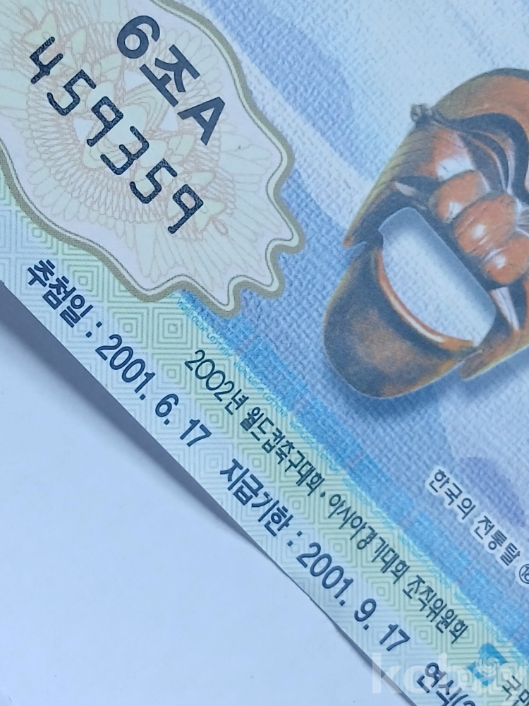 사진과 같은 2001년 6월17일 발행 160회차 월드컵 연식 복권 한 장