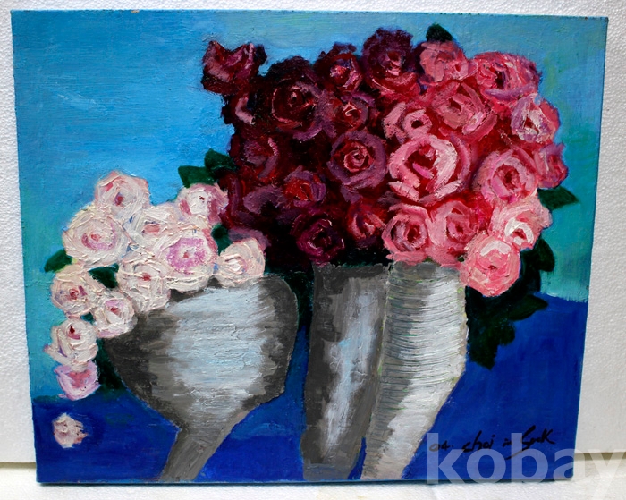 (유화) 2004년 '최인숙'의 유화정물 - 화병속의 장미 (8 F)