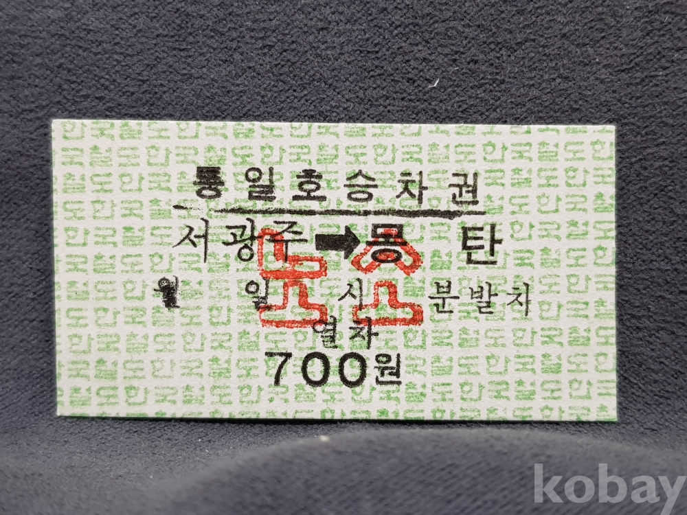 - 미사용 통일호 승차권 노소 " 서광주 ▶ 몽탄 " 700원