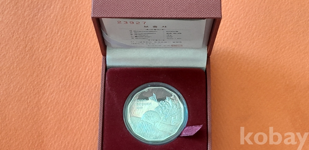 액면 20,000원, 소재 순은(99.9%), 중량 - 19 g, 직경 33 mm(일곱 번째 사진 참조)