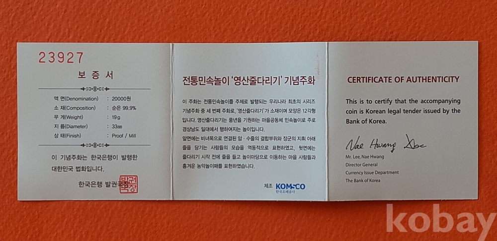 2009년 전통민속놀이 '영산줄다리기' 무광프루프 주화 입니다.