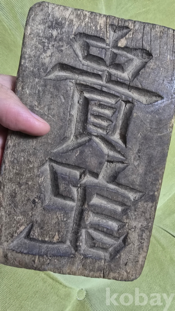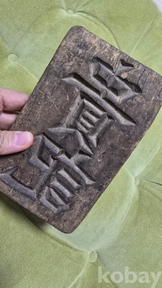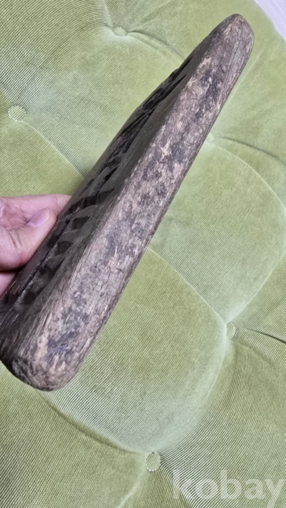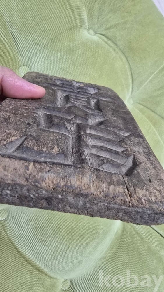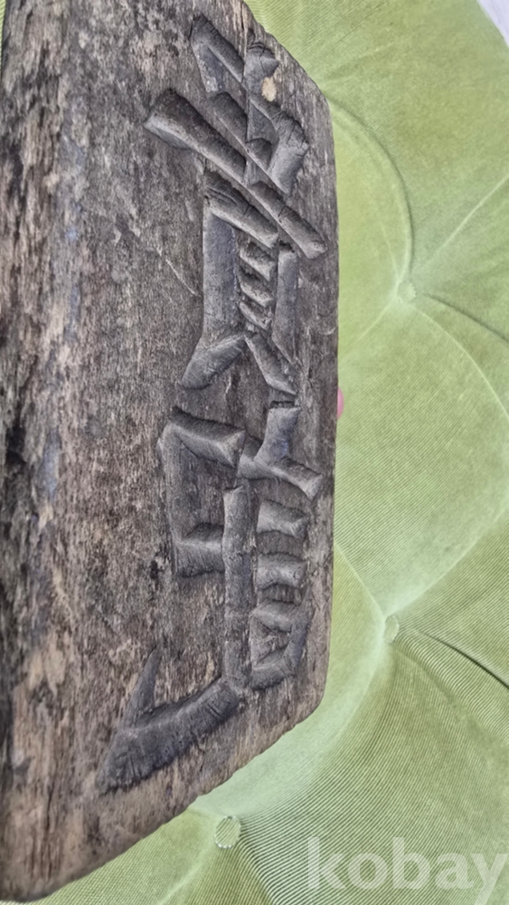 이 물건은 두툼한 통나무에 글씨가 아주 힘 있게 파여 있는 옛날 목물입니다.